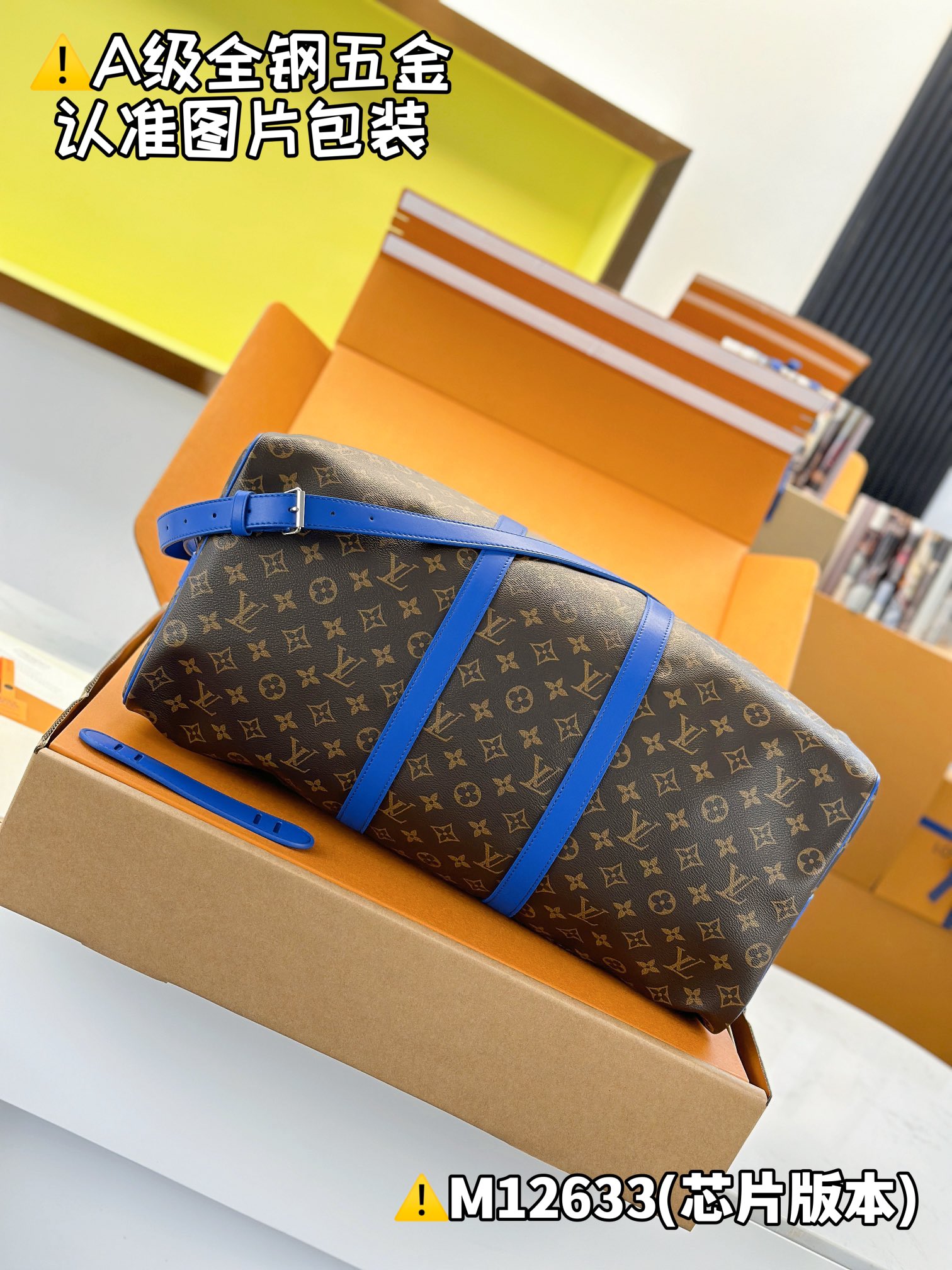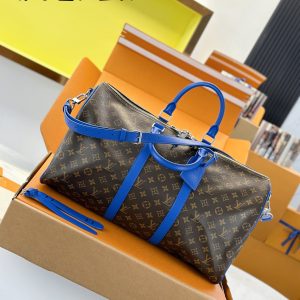 Internal Price P1150. M12633 [Genuine Leather, Full Steel, Chip Edition with Complete Boutique Packaging] KEEPALL BANDOULIÈRE 50 Travel Bag This Keepall Bandoulière 50 travel bag features Monogram Macassar canvas with a vibrant top handle, detachable shoulder strap, and leather nameplate. Its striped fabric lining pays homage to the brand’s original trunks. 29 x 23 x 50 cm (H x W x L)