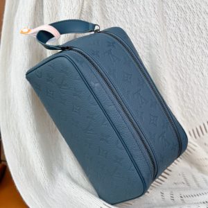 Internal Price P870. M11497 Blue (〽️Grade A Full Steel〽️) Personalized Edition! 163 Variable-Code Chip, DOPP KIT Toiletry Bag!This Dopp Kit features ample space crafted from Monogram grained calf leather, with dual zippers and a washable lining to effortlessly organize toiletries and travel essentials. Perfect as a thoughtful gift or to complement Louis Vuitton luggage.