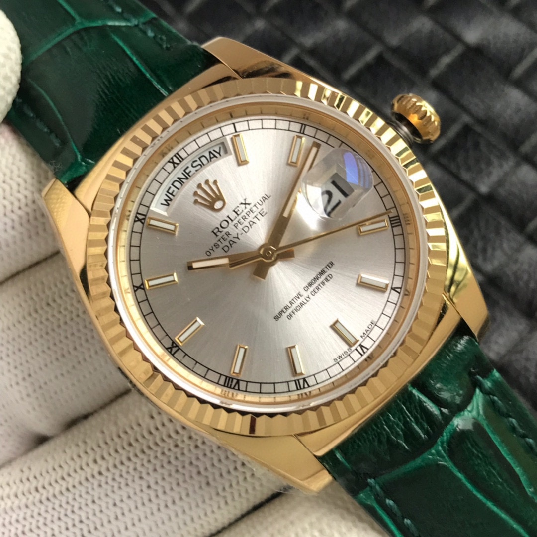 Long-awaited v3 upgrade in full color range (Classic Belt Style Day-Date) DD 36mm arrives! Exclusive custom-made matching Day-Date dial [v7 version]—Rolex’s most iconic series, unmatched except by DD! Rolex Day-Date series 118135/118138/118139 [Full 8-Color Range]! To maintain official dimensions and thickness, we’ve equipped it with the 2836-2 automatic mechanical movement, housed in a brand-new 904L steel case!