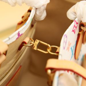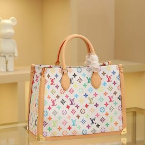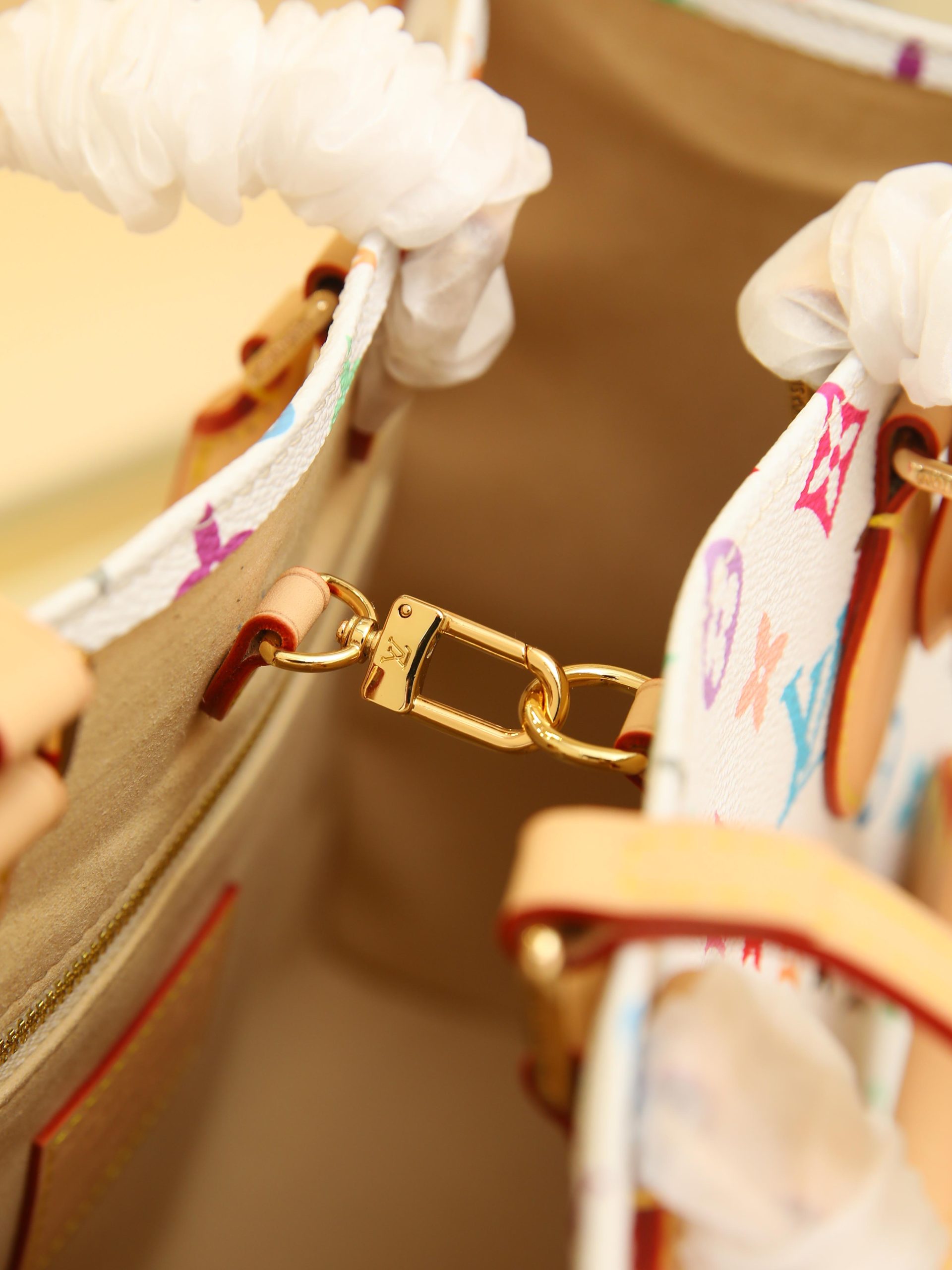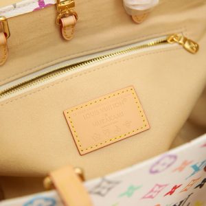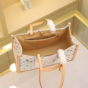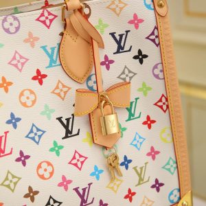 Louis Vuitton x Takashi Murakami Re-Edition Collection reimagines the OnTheGo Medium bag with dynamic brushstrokes. The vibrant Monogram canvas body, calf leather trim, and LV x TM key case showcase refined elegance, while polished corner pieces evoke Louis Vuitton’s heritage trunk design. The shoulder strap and top handle offer versatile carrying options.27 x 14 x 35 cm (Height x Width x Length)