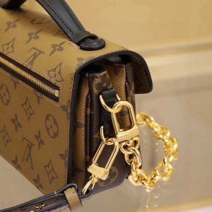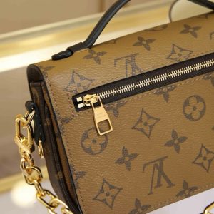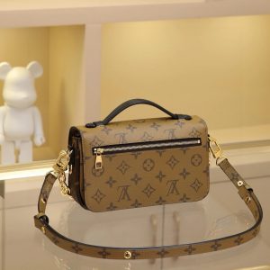LV Messenger Bag in Mini Size The East West Métis handbag features a stylish shoulder bag silhouette with a trendy vibe. Crafted from the brand’s Monogram canvas, this compact piece boasts a distinctive S-lock clasp and a chic top handle, with a polished surface that gleams brilliantly. Versatile and spacious, it includes a detachable long shoulder strap for easy carrying over the shoulder or crossbody. An ideal companion for everyday outings. Dimensions: 21.5 x 6 x 13.5 cm