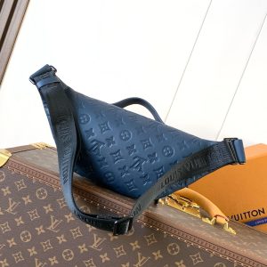 M14784 Deep Blue Top-Grade Authentic Monogram Shadow Embossed Leather Waist Bag with Variable-Code Chip 163c This Rush waist bag features Monogram Shadow embossed calf leather with a matte finish, showcasing dynamic charm through its sleek color palette.Its adjustable strap allows versatile wear—around the waist, over the shoulder, or crossbody. 15 x 8 x 30 cm (H x W x L)