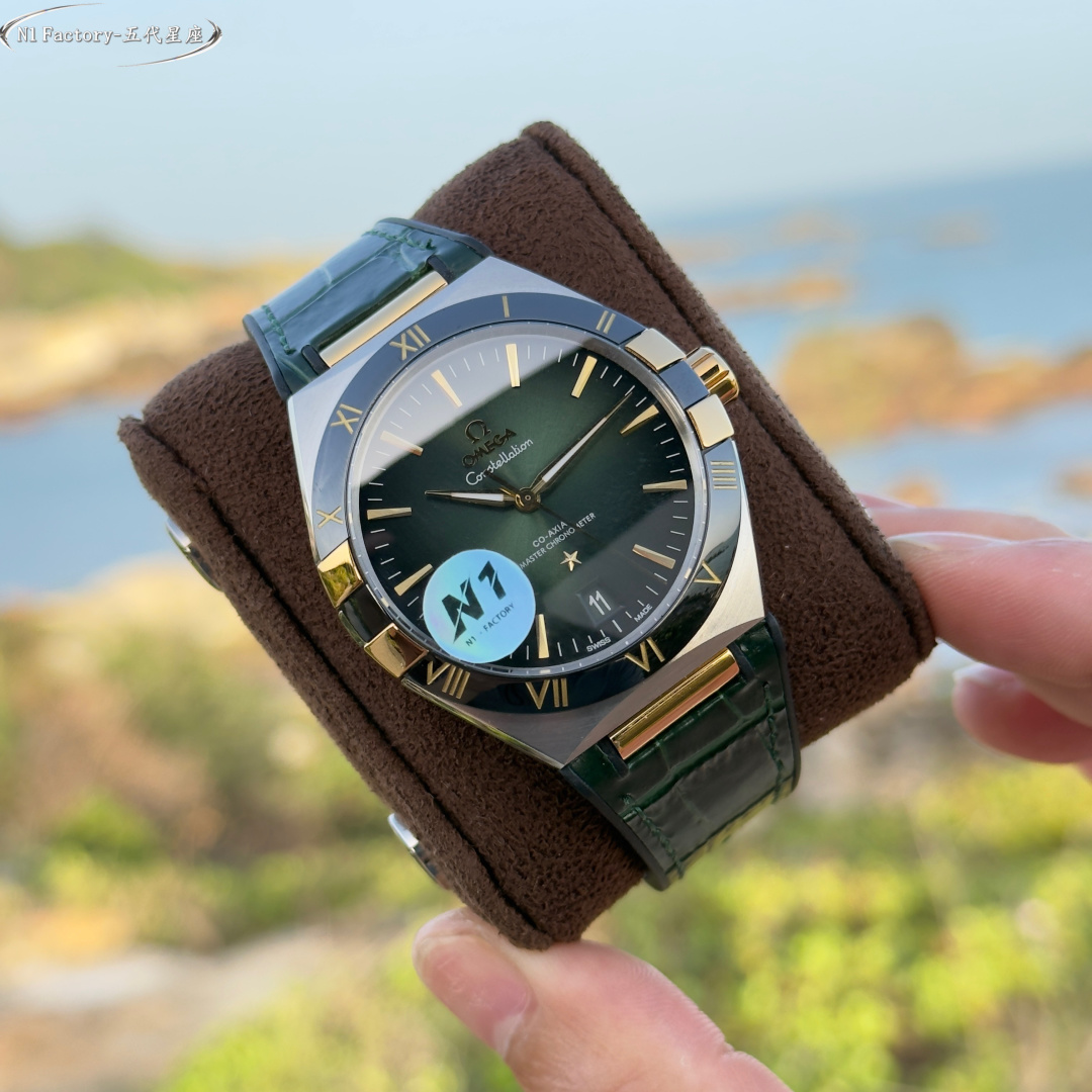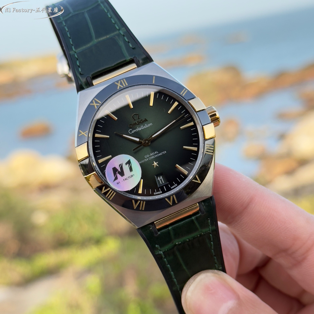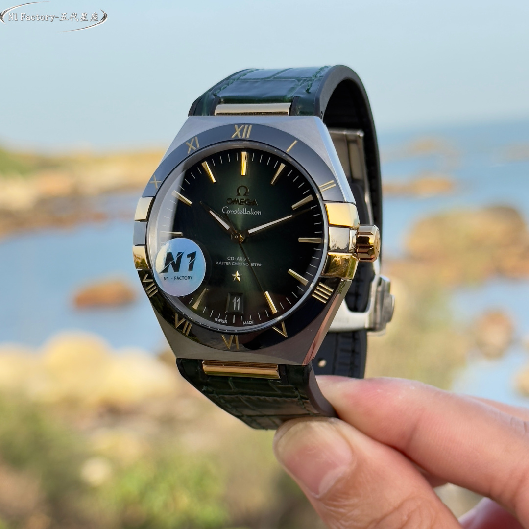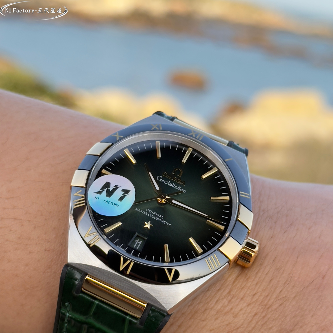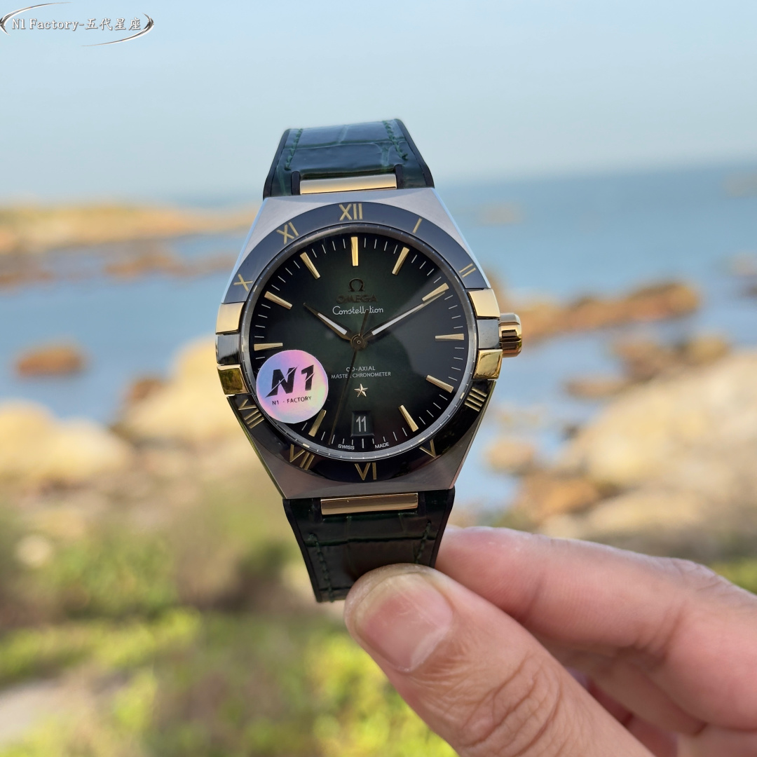 N1 Factory Masterfully Crafted Omega 41mm Master Chronometer (Fifth Generation Constellation) 131.30.41.21.99.001 Series N1 Factory pursues the pinnacle of watchmaking artistry. By acquiring authentic models for in-depth study, we integrate modern cutting-edge techniques and advanced materials to meticulously refine every detail, faithfully recreating the timeless essence of the Omega Constellation collection. Featuring an exclusive genuine 8900/8901-compatible dual-time zone quick-set calendar movement, the original 6-position balance wheel undergoes meticulous finishing. This ensures not only stable and reliable performance but also showcases the exquisite artistry of mechanical watchmaking. The case employs the latest CNC technology, achieving precise dimensions and delicate textures. The front and rear sapphire crystals complement each other, presenting a perfect fusion of quality and aesthetics from every angle.The dial hands employ advanced PVD coloring techniques. The mysterious multicolored meteorite dial harmonizes with the classic dial face, complemented by vibrant titanium and ceramic bezels that blend modern flair with timeless elegance.The butterfly folding clasp with quick-adjust functionality mirrors the original design, offering excellent weight and tactile feel for an unparalleled wearing experience. N1 Factory presents the most comprehensive and highest-grade version of the classic 41mm fifth-generation Constellation, paying homage to tradition while continuing the legend.