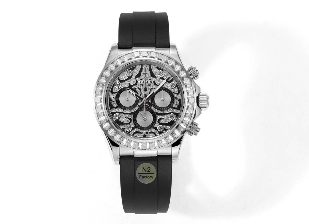 Case diameter: 40mm. Movement: Caliber 7750 (can be fitted with Caliber 4130). Functions: Chronograph, anti-magnetic. White Gold Tiger’s Eye Yellow Gold Tiger’s Eye T-shaped Diamond Meteorite Dial T-shaped Diamond Bezel with Mother-of-Pearl Diamond Dial Features: Caliber 7750 movement, size: 40mm.The little-known Tiger Tiger Star, all-gold with a tiger-patterned dial later upgraded to full diamonds. This watch debuted at Baselworld 2019, featuring a bezel set with 36 T-square diamonds. The dial and hour markers are adorned with meticulously selected diamonds of the same grade, making its luxury as an official custom piece undeniable.Tiger-patterned dial Daytona, resembling the stripes on a tiger’s coat. The black and gold combination accentuates its masculine vigor.