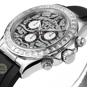 The Daytona 116589TBR features a black lacquered dial adorned with diamonds, resembling the stripes on a tiger’s coat. Watch enthusiasts affectionately nickname it the “Eye of the Tiger” for its distinctive tiger-patterned dial.