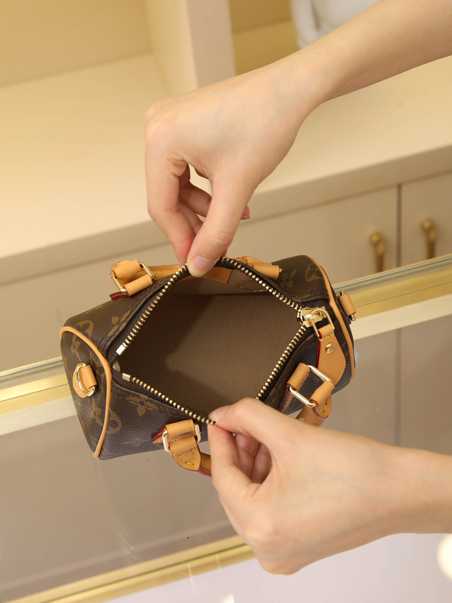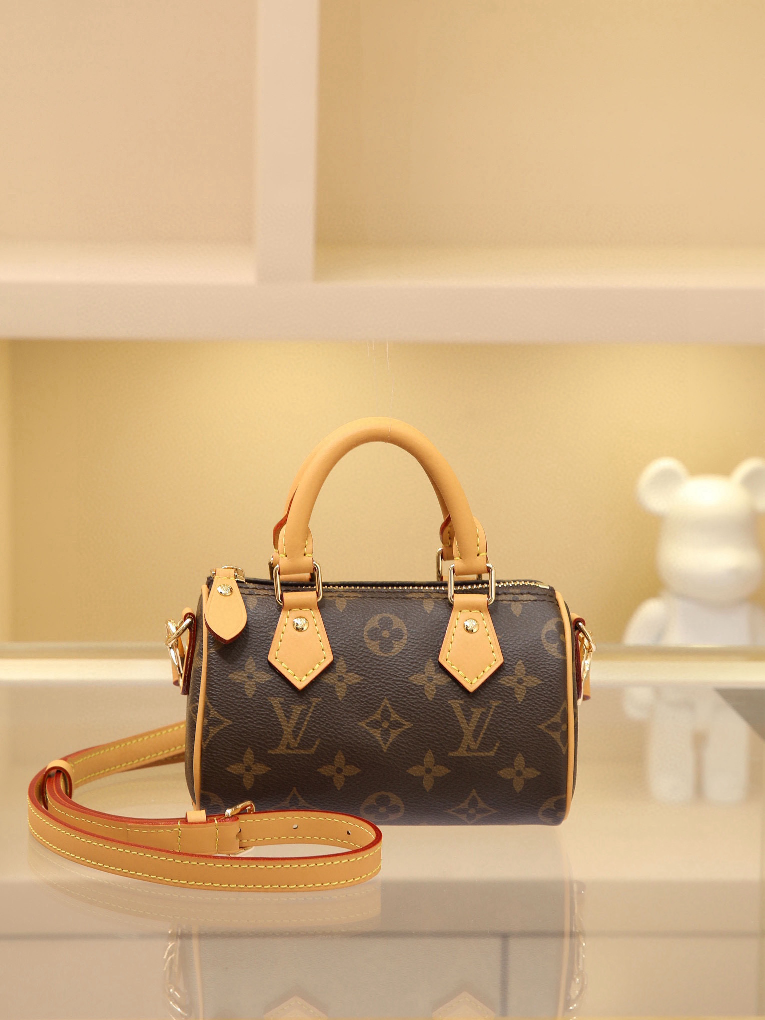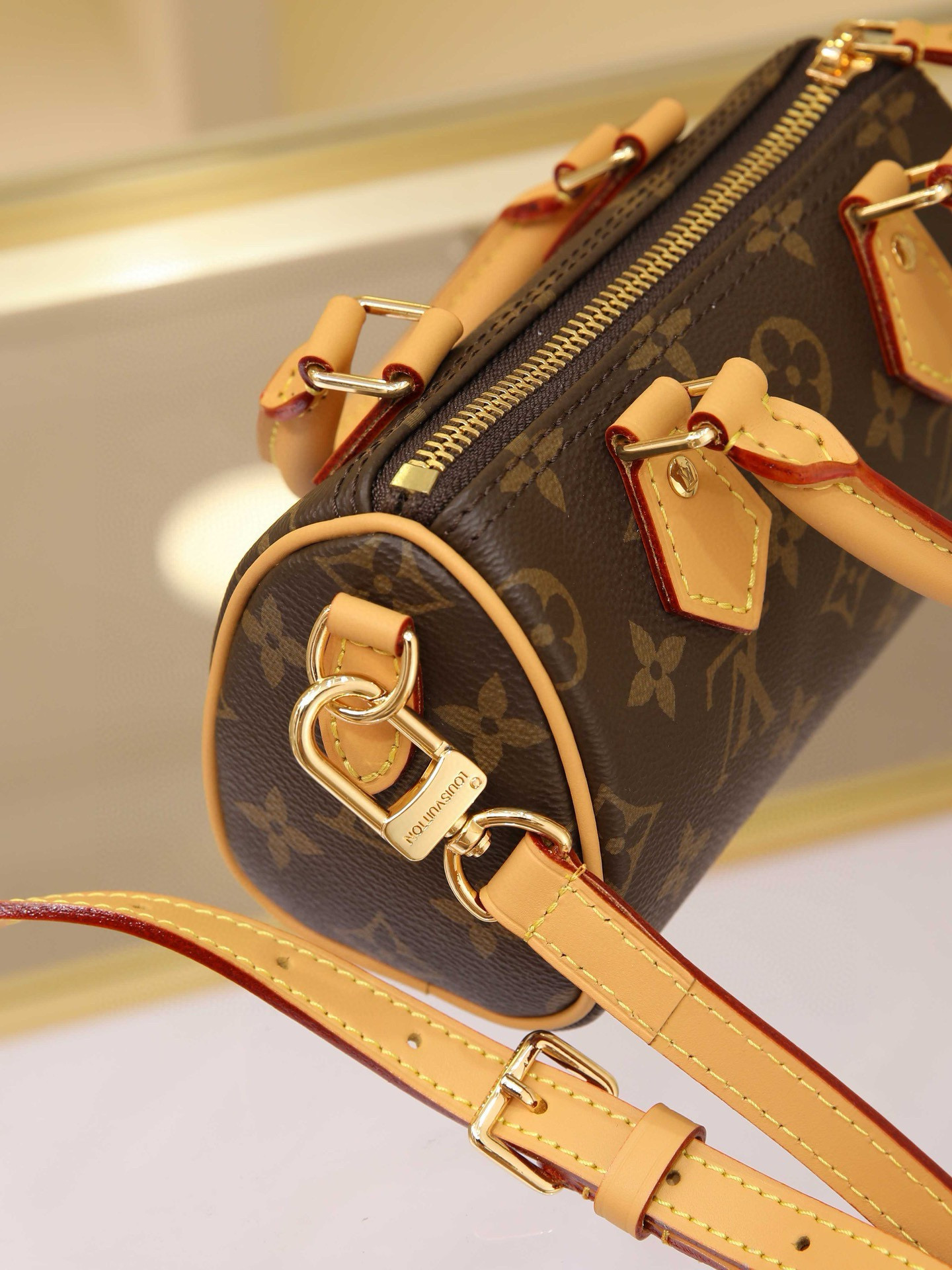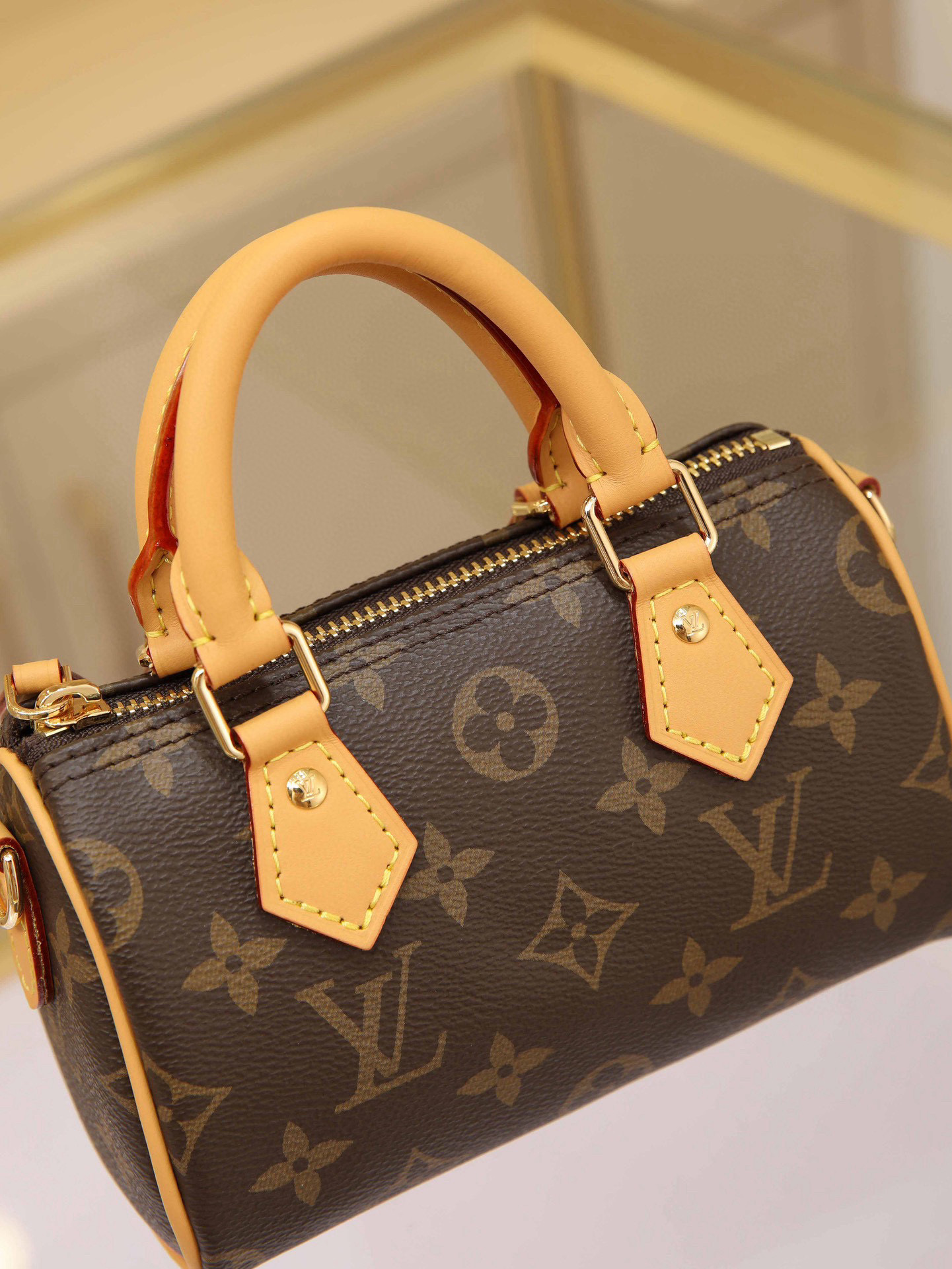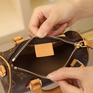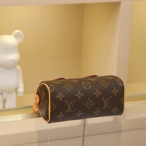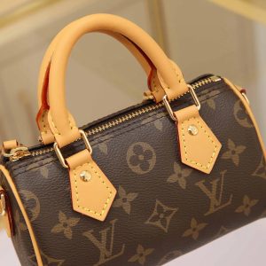 New Edition NANO SPEEDY Handbag Vintage Print This handbag is the perfect mini version of the original Speedy bag, featuring exquisite stitching and unparalleled lightness. More flexible than the previous version, it comes with an adjustable and removable shoulder strap. Dimensions: 16x11x9cm.