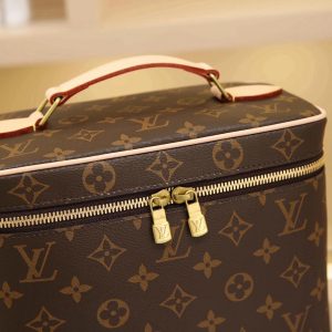 NICE BB Cosmetic Bag M42265 Drawing inspiration from the iconic Nice cosmetic bag, this elegant toiletry case offers a distinctive way to carry essential beauty products. A hidden zippered pocket inside the flap provides secure storage for particularly valuable personal items.- Top woven handle – Monogram coated canvas exterior – Specially coated canvas washable lining – Natural cowhide leather trim – Gold-tone metal hardware – Double-zipper closure – Generous interior capacity – Zippered pocket inside flap – Multiple interior slip pockets – Size: 24*14*17 cm