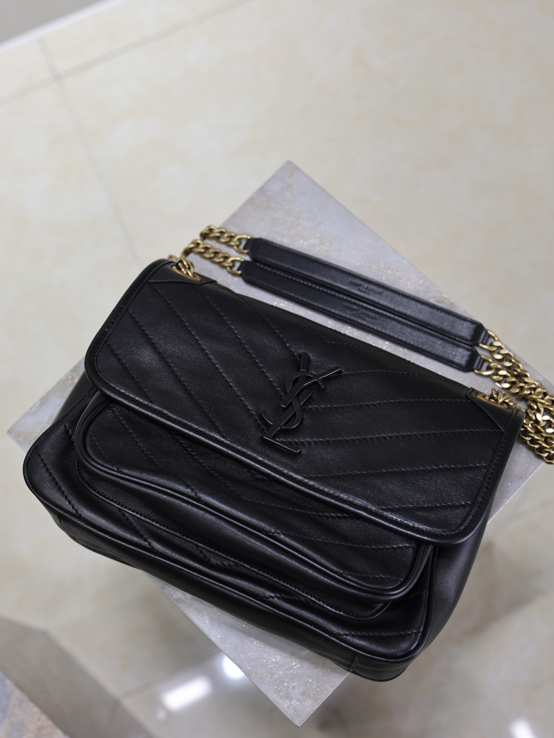 Niki 28cm · Black Lambskin Spring/Summer Lambskin Edition The Niki’s metal chain has been upgraded to a substantial gold finish, lending the entire bag an added touch of elegance and sophistication. It strikes the perfect balance—not overly trendy yet distinctly expressive—making it a truly remarkable piece! Crafted from exclusive zp-sourced genuine leather paired with premium solid brass hardware—it’s unmistakably zp!Model: 498894 Dimensions: 28×20.5×8.5cm
