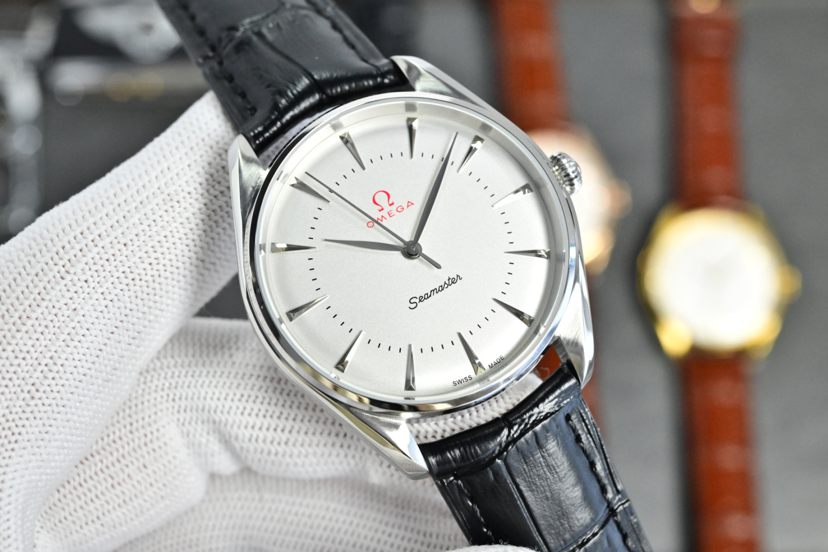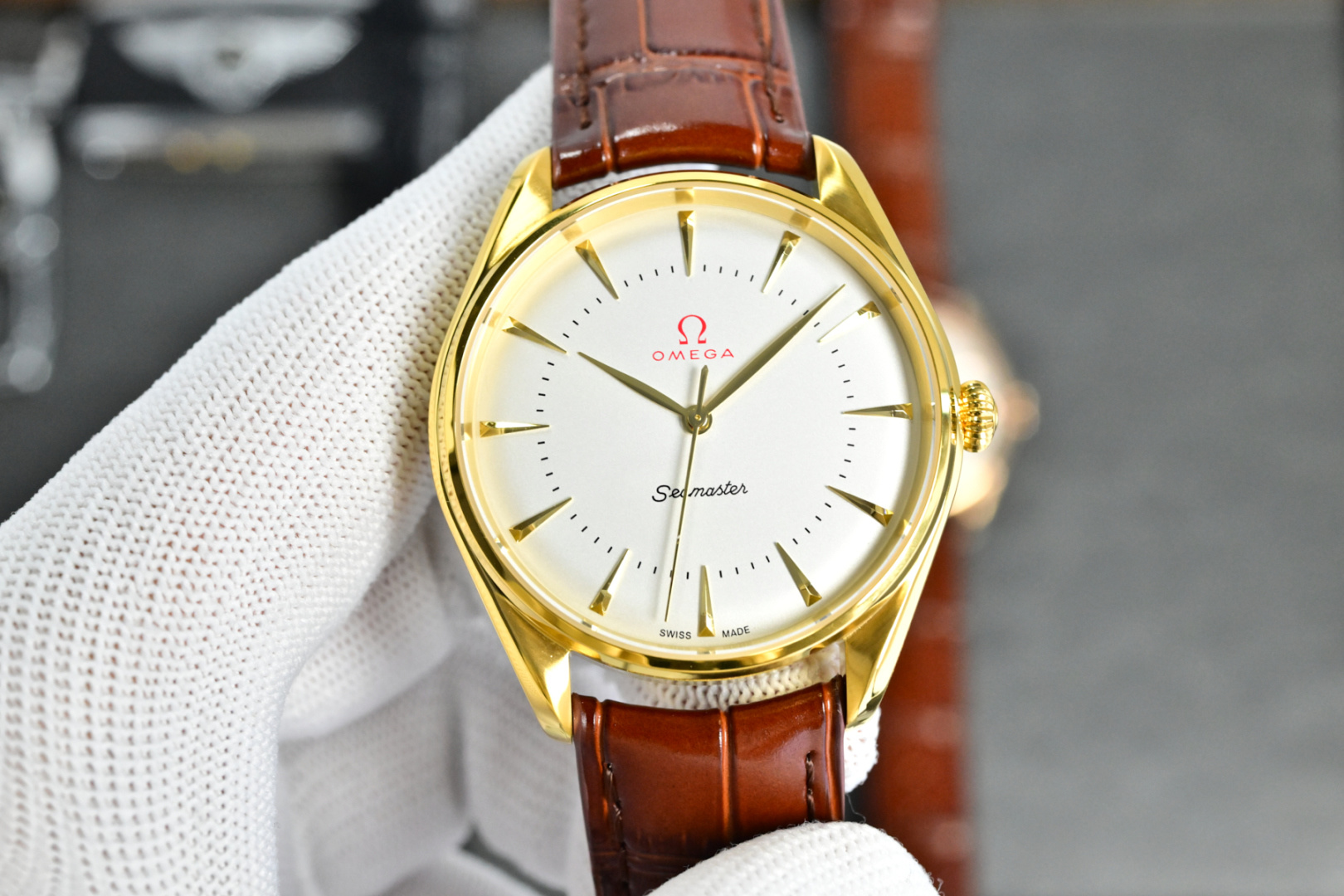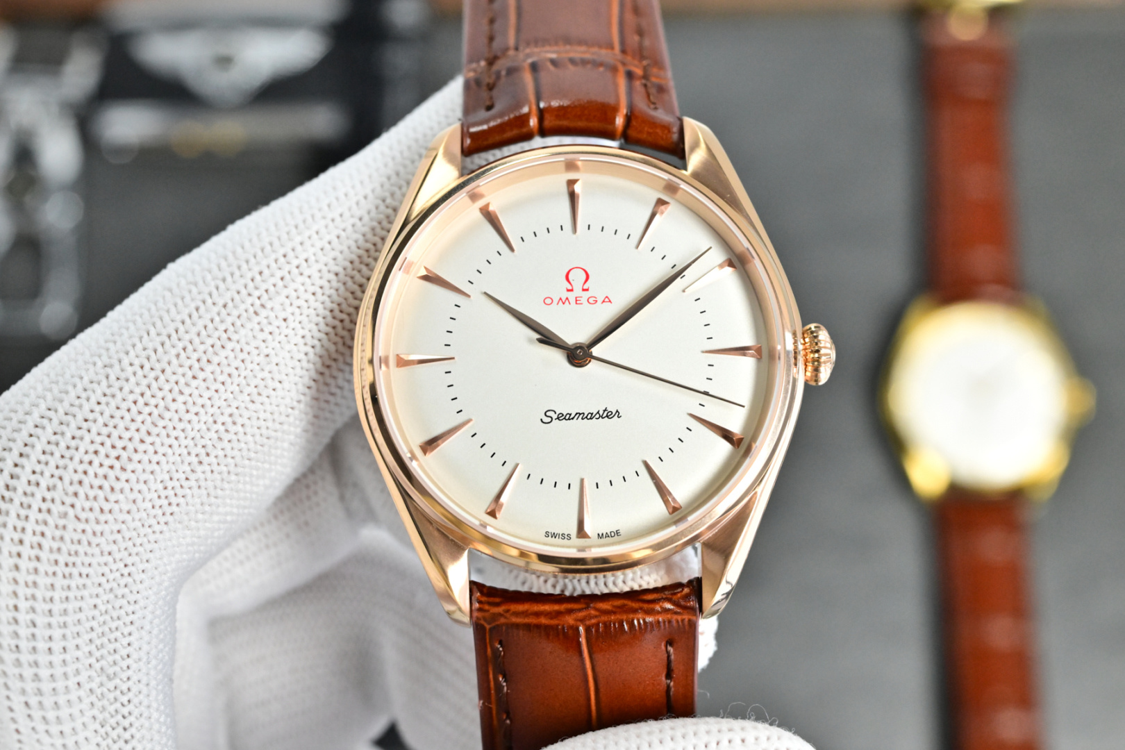 The stainless steel case measures 39.50mm in diameter. Its arched dial features a gradient effect, complemented by 18K Sedna™ gold brand logos, hands, and hour markers.The date display is positioned at 6 o’clock. The leather strap is crafted from imported calfskin. Through the domed sapphire crystal, the Calibre 8800 Master Chronometer movement powers the watch. To achieve Master Chronometer certification, the movement boasts an extended 72-hour power reserve. Its precise and stable timekeeping makes it suitable for both casual and business settings, making it the top choice for young professionals.