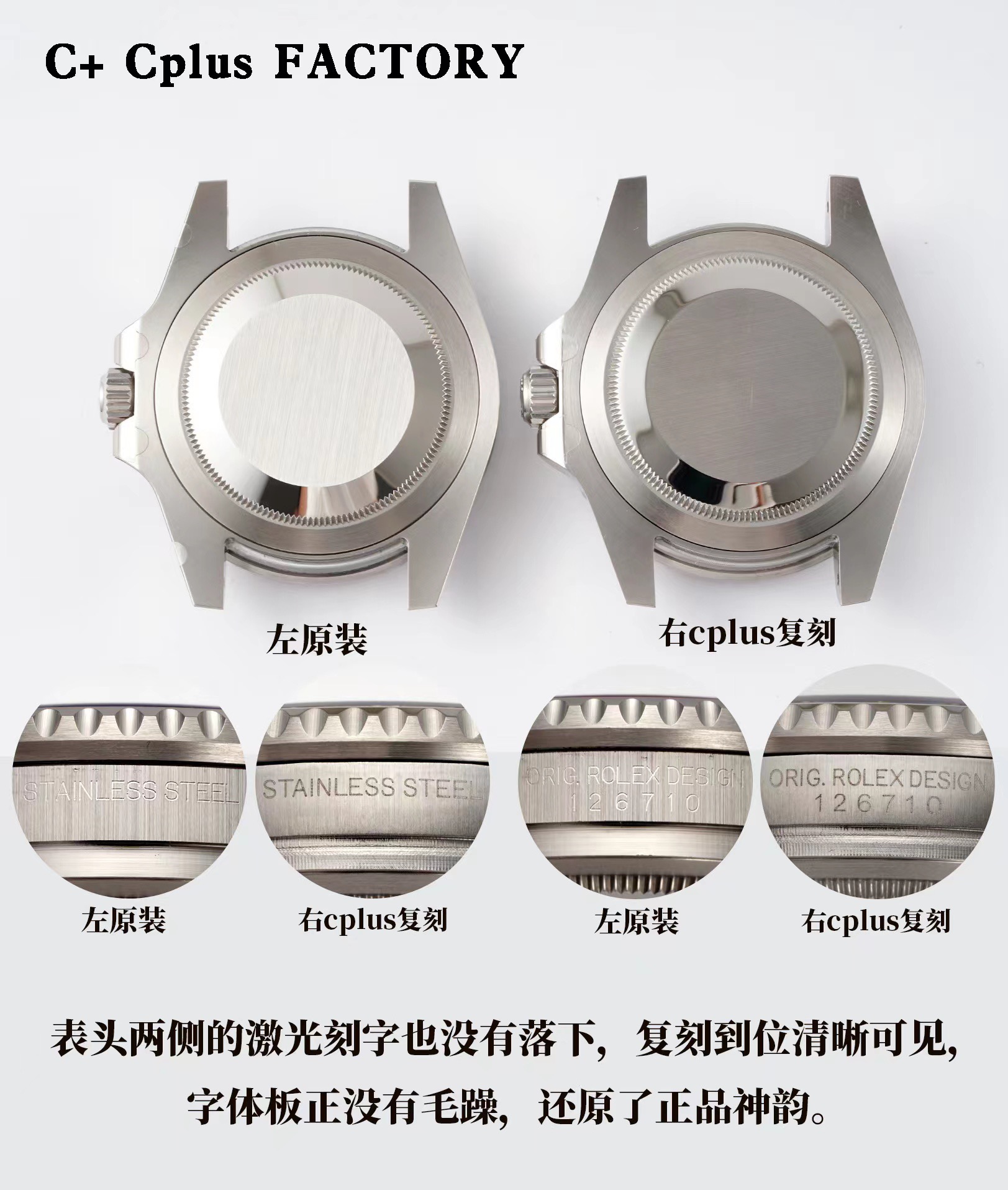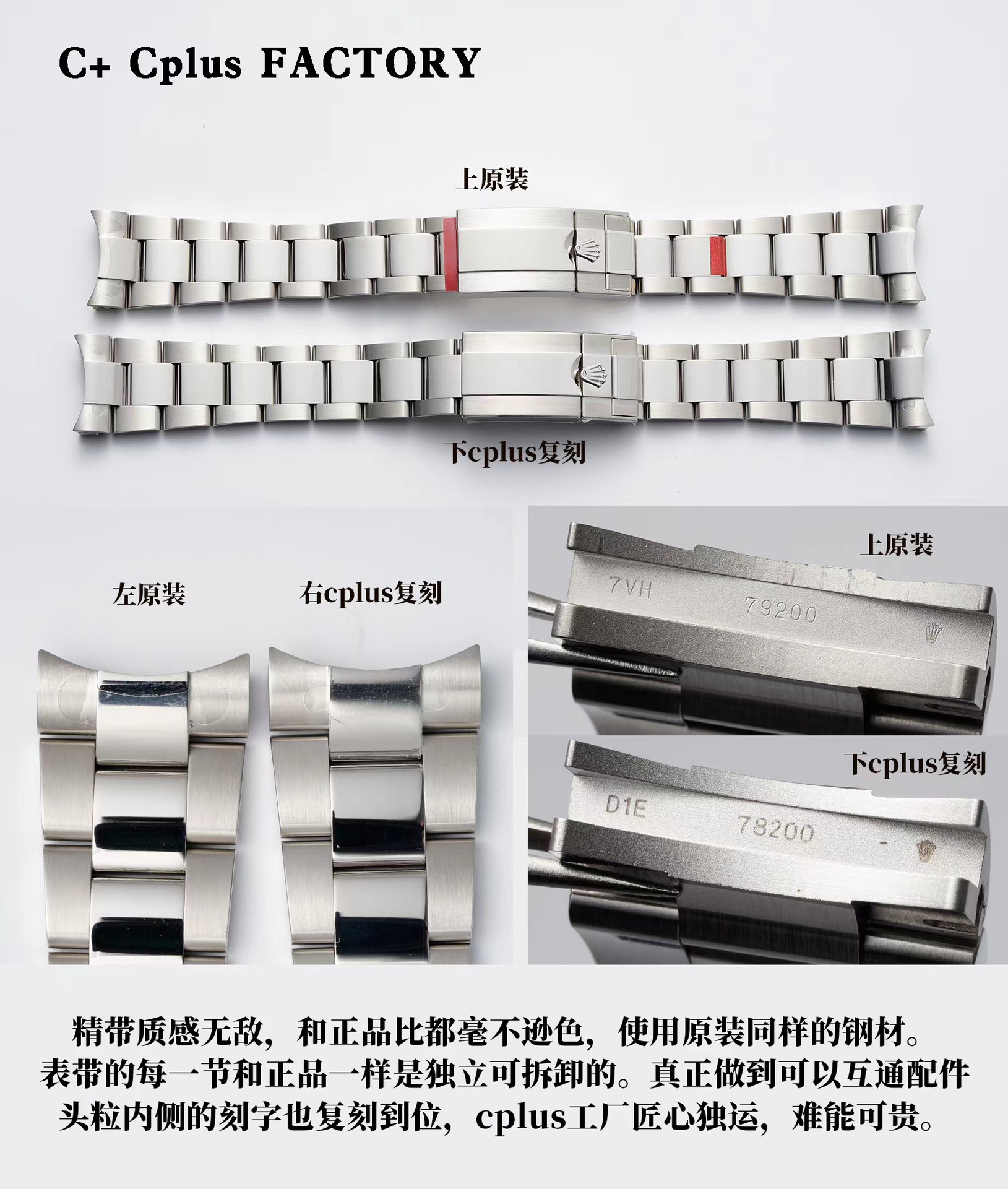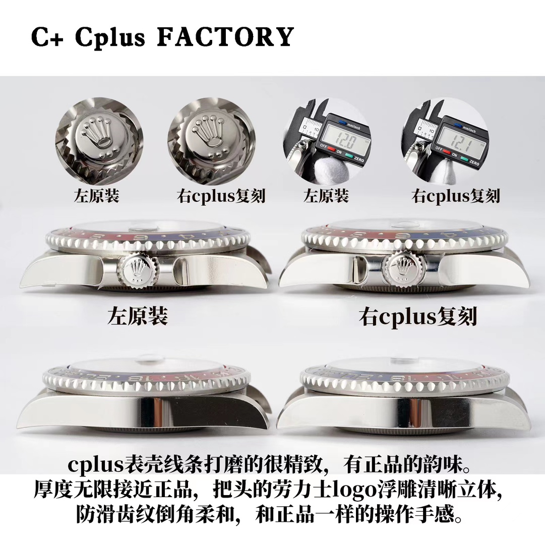 Original vs. Replica Comparison. C+ Cplus redefines top-tier replicas—Rolex GMT-Master II “Coke Bezel” 40MM case diameter, crafted entirely from 904L steel.with upgraded brushed metal finish matching the authentic piece’s refined texture. The exclusive red-blue ceramic bezel achieves zero color deviation through repeated firing and color calibration. Silver-plated bezel markers feature intricate texture and brilliant luster. The deep black dial exudes sophistication, while the logo font underwent multiple refinements against the genuine article to eliminate discrepancies.All hour markers and hands utilize Swiss-imported luminous powder, meeting genuine factory standards in both granular texture and luminosity. Each link of the 904 stainless steel bracelet undergoes individual polishing, with interlink spacing micro-adjusted to micrometer precision, achieving the same “suppleness” as the genuine article. The movement, refined through years of development and iterative upgrades, now stands as the market-leading 3285 caliber.Each movement undergoes extensive testing before shipment to guarantee flawless performance upon delivery! C+ Cplus redefines the watch community, offering genuine dedication to all watch enthusiasts!