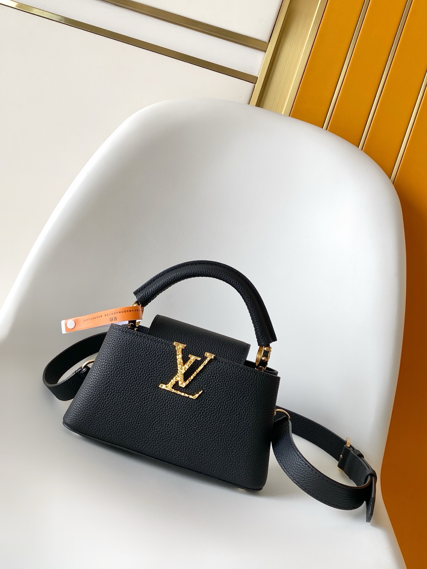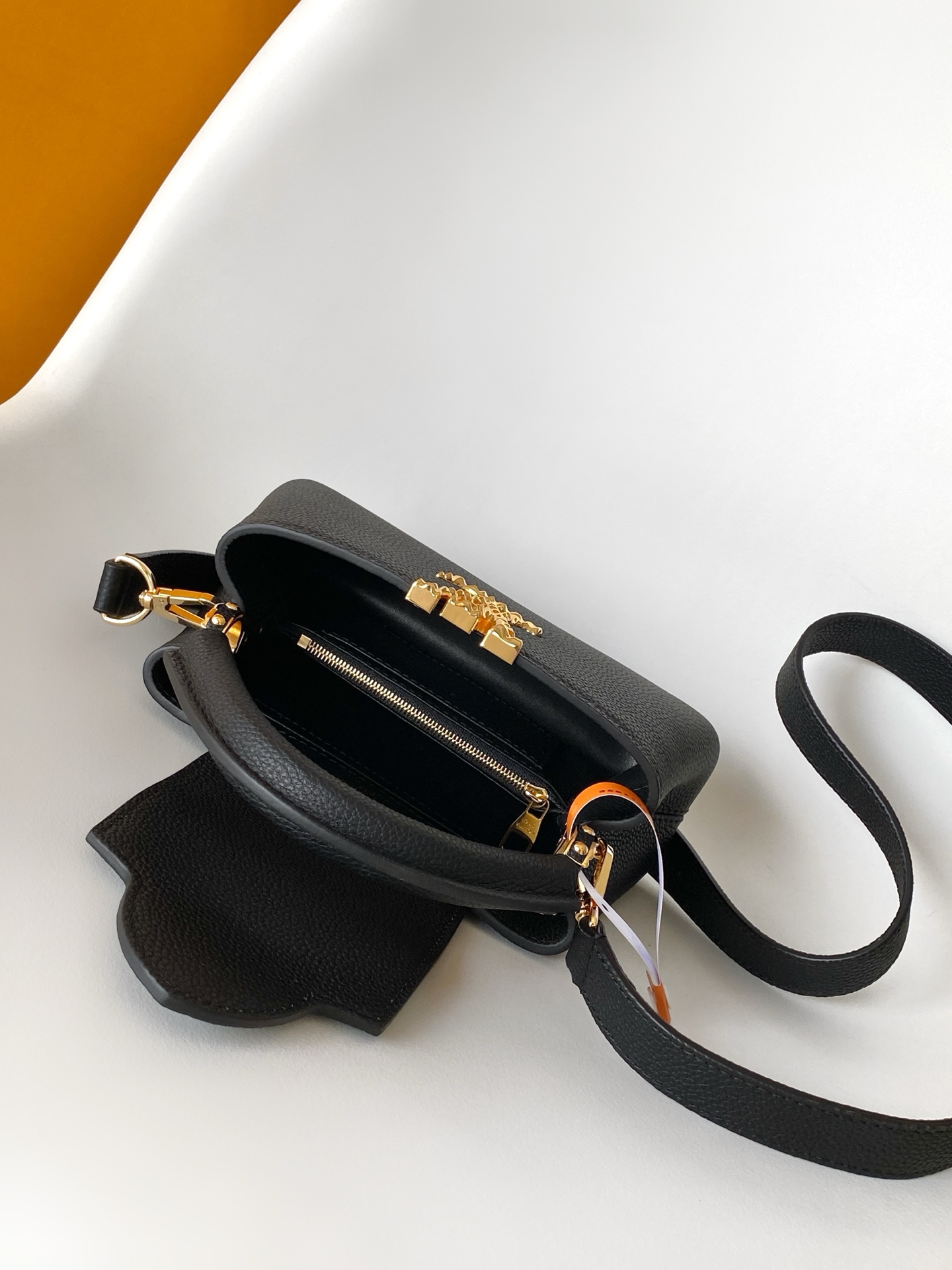Be the first to review “p108022.0 x 12.0 x 8.0 cm (L x H x W)33.0 x 19.0 x 9.0 cm (L x H x W)•Grain cowhide leather•Grain cowhide leather trim•Smooth cowhide leather lining•Metal hardware•Flap can be positioned inside or outside•Compartments include zippered pocket and slip pocket•Metal studs•Holds smartphone, compact wallet, and other items•Shoulder strap: Removable, adjustable•Strap half-length: 46.5 cm • Strap half-length adjustable to: 54.0 cm • Handle: Single handle” Cancel reply