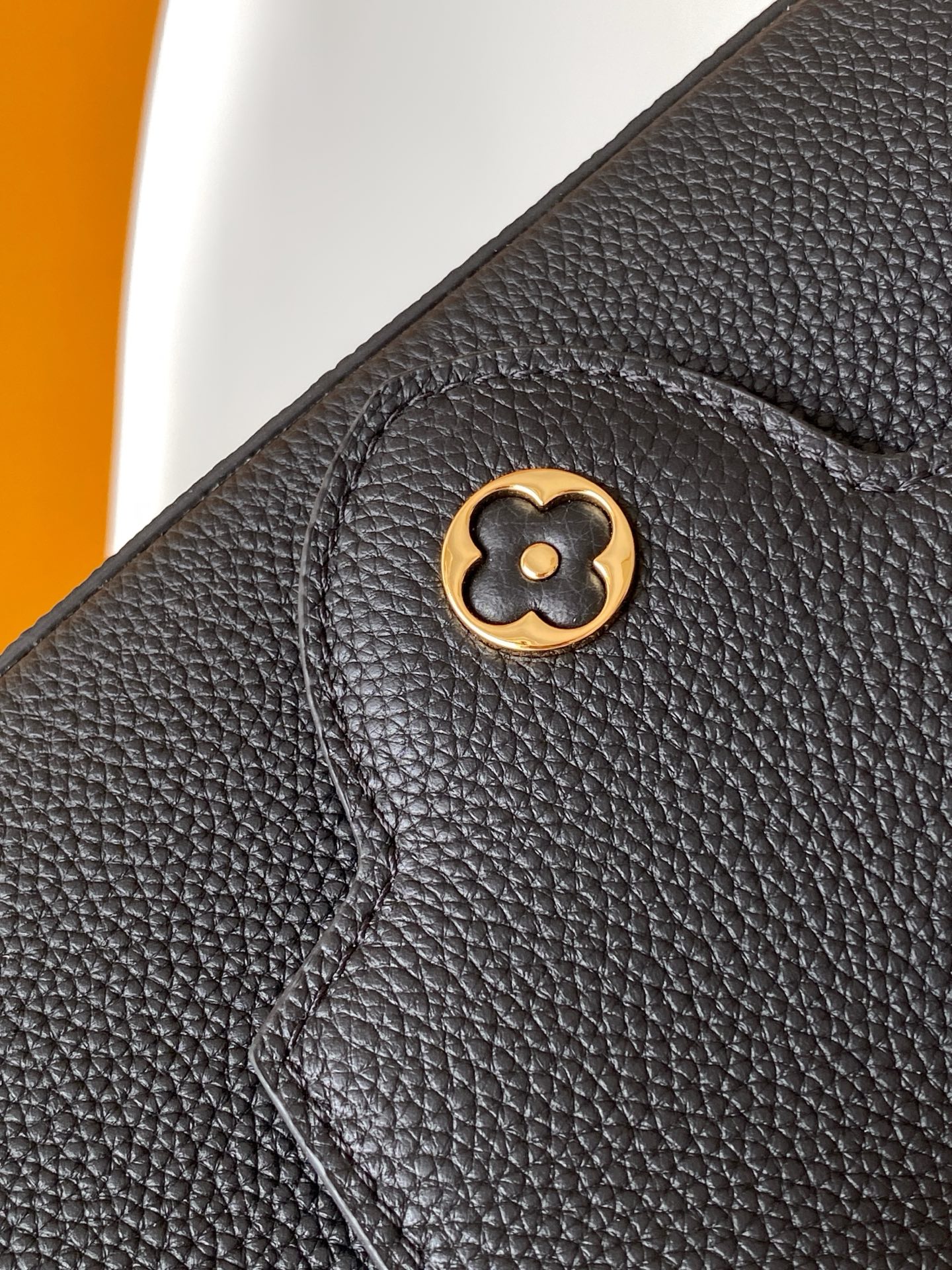 p108022.0 x 12.0 x 8.0 cm (L x H x W)33.0 x 19.0 x 9.0 cm (L x H x W)•Grain cowhide leather•Grain cowhide leather trim•Smooth cowhide leather lining•Metal hardware•Flap can be positioned inside or outside•Compartments include zippered pocket and slip pocket•Metal studs•Holds smartphone, compact wallet, and other items•Shoulder strap: Removable, adjustable•Strap half-length: 46.5 cm • Strap half-length adjustable to: 54.0 cm • Handle: Single handle