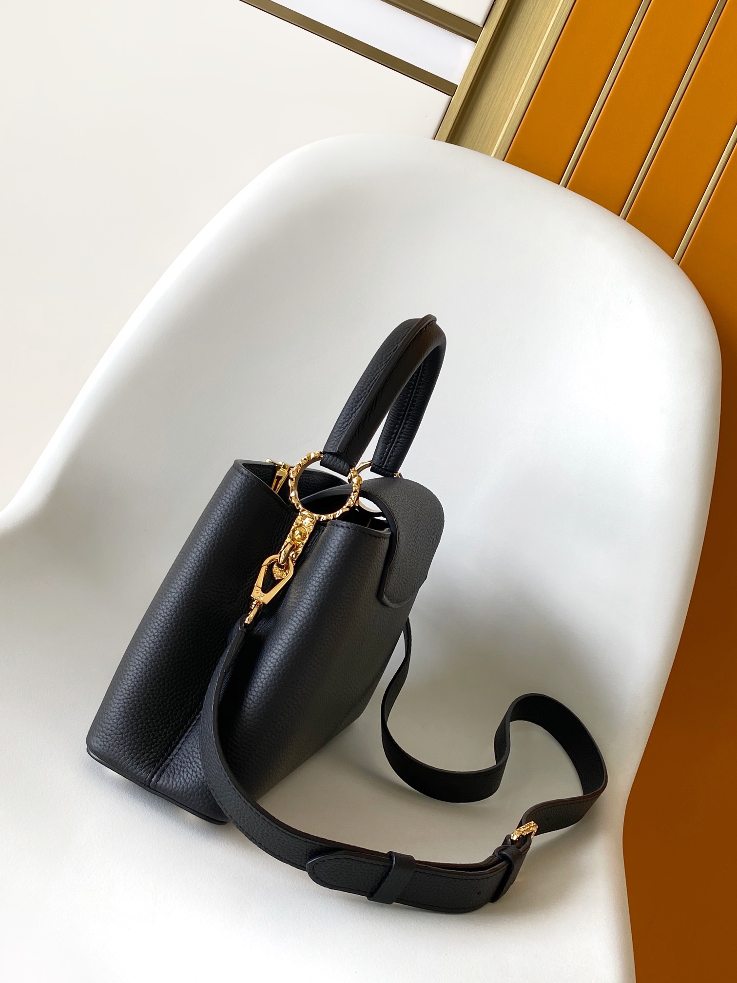 Be the first to review “p122022.0 x 12.0 x 8.0 cm (L x H x W)33.0 x 19.0 x 9.0 cm (L x H x W)•Grain cowhide leather • Grain cowhide leather trim • Smooth cowhide leather lining • Metal hardware • Flap can be positioned inside or outside • Compartment features zippered pocket and slip pocket • Metal studs • Holds smartphone, compact wallet, and other items • Shoulder strap: Removable, adjustable •Strap half-length: 46.5 cm • Strap half-length adjustable to: 54.0 cm • Handle: Single handle” Cancel reply