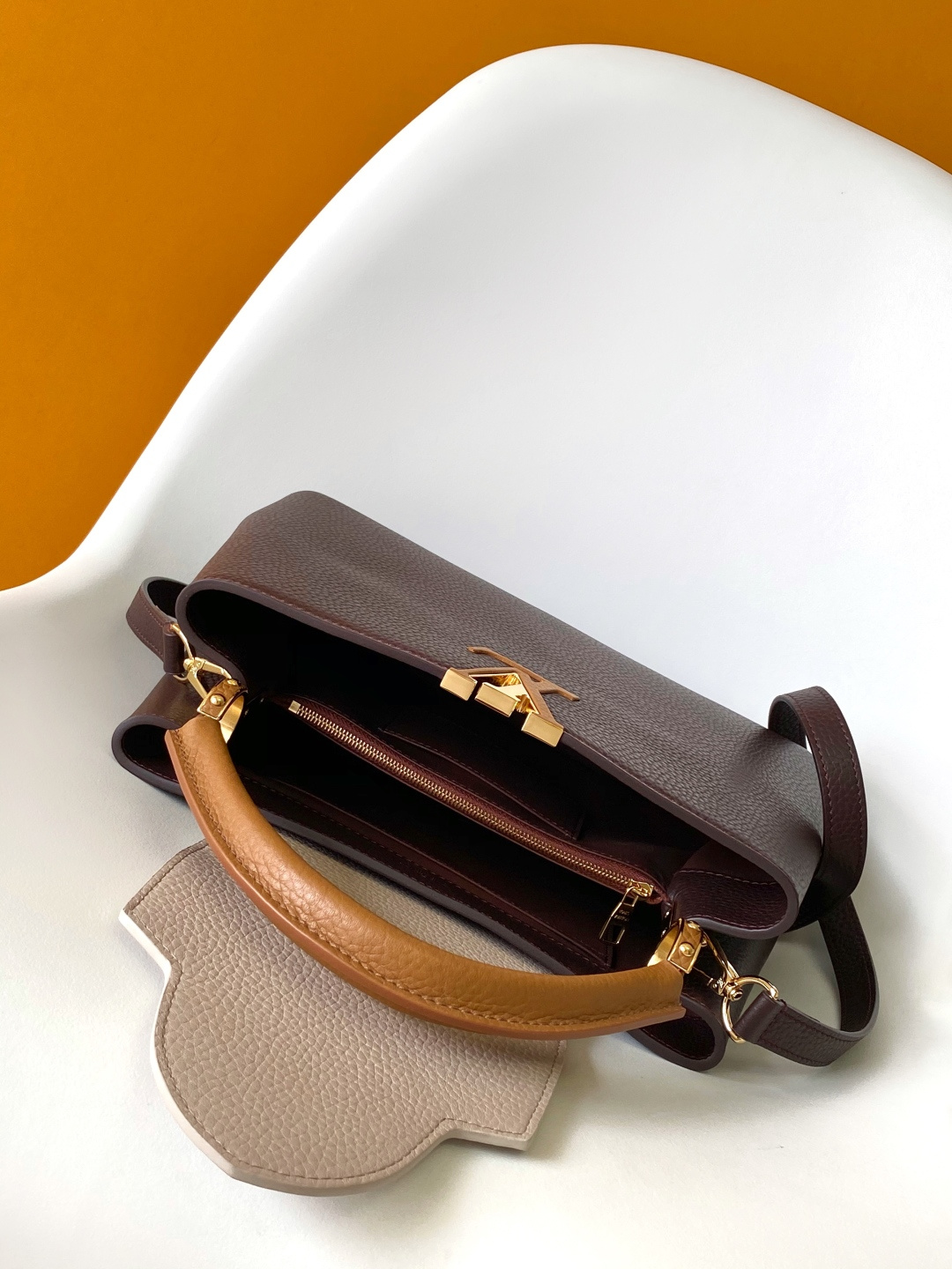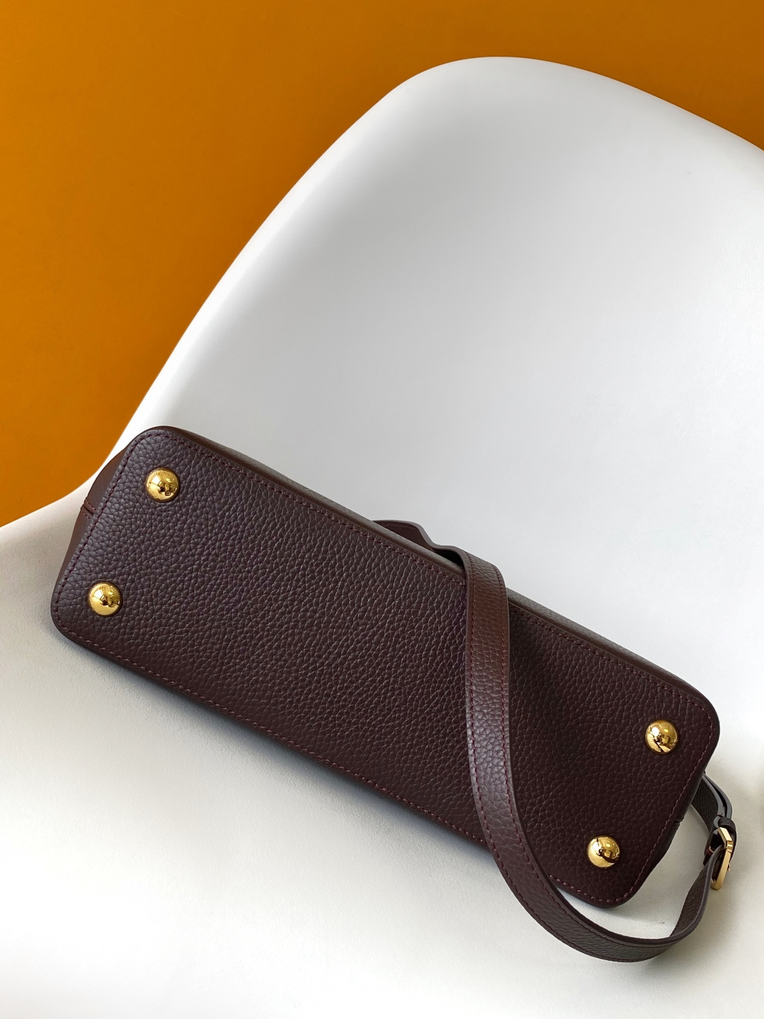 p125031.05 x 20.0 x 11.0 cm (L x H x W)27.0 x 17.3 x 9.0 cm (L x H x W)21.0 x 13.6 x 8.0 cm (L x H x W)•Taurillon calf leather•Calf leather trim•Cowhide leather lining•Metal hardware•Flap can be positioned inside or outside•Zippered interior pocket•Interior patch pocket•Metal studs•Holds smartphone, LV Vertical wallet, headphones, and keys•Shoulder strap: Detachable, adjustable•Strap half-length: 45.5 cm•Strap half-length adjustable to: 53.0 cm•Handle: Single handle