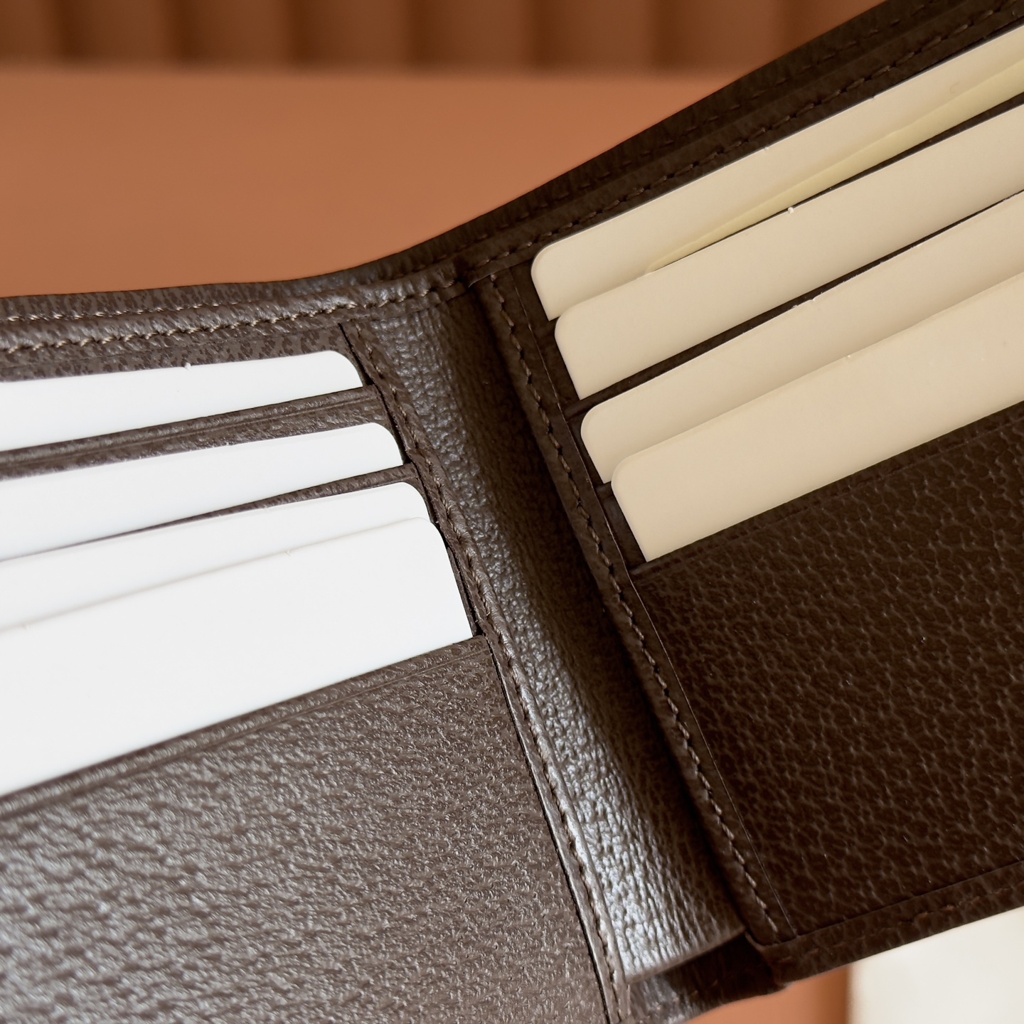 Interior: 8 card slots, 1 bill compartment, 2 internal flat pockets (below card slots)