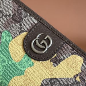 p340. 💋💋💋【Complete with original boutique packaging】Vibrant camouflage meets distinctive color combinations, reimagining the iconic GG motif. This long cardholder is crafted from GG monogrammed coated fabric with a marbled effect, featuring meticulously integrated double G details.