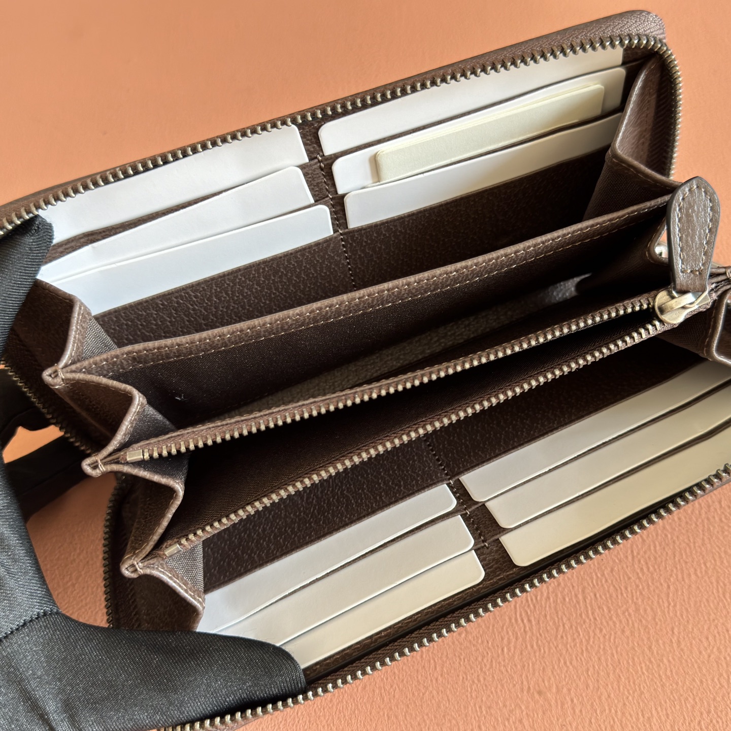p390. 💋💋💋【Complete with original boutique packaging】Vibrant camouflage meets distinctive colorways, reimagining the iconic GG motif. Crafted from marble-effect GG monogram coated fabric, this full-zip wallet showcases meticulous double-G detailing.Green and yellow camouflage marble GG monogram coated fabric Brown leather trim Rhodium-tone hardware Brown taffeta lining Double G webbing detail Interior: 12 card slots, 3 bill compartments, 1 zipped coin pocket Zip closure Model: 834694.Dimensions: 19 cm (W) x 10.5 cm (H) x 2.5 cm (D) Weight: Approx. 230 g Color: Red camouflage/PVC Made in Italy