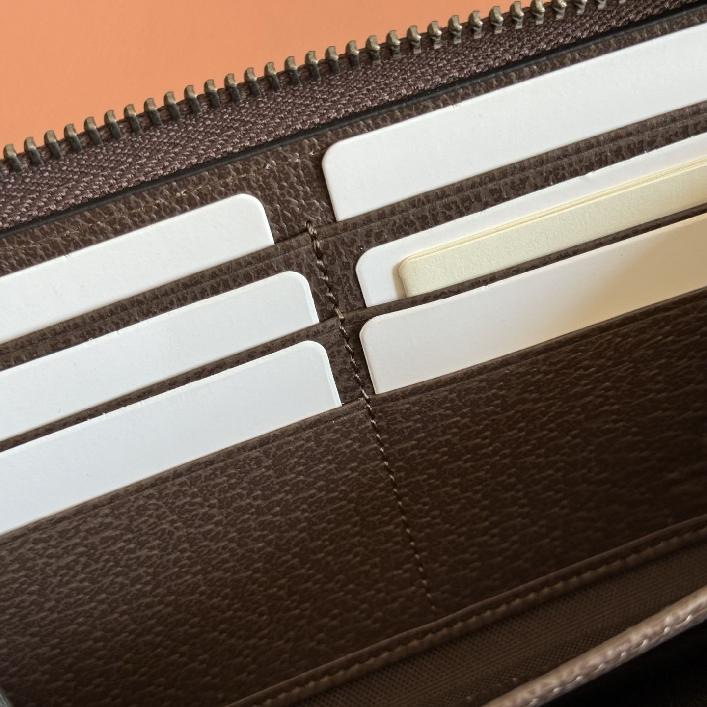 p390. 💋💋💋【Complete with original boutique packaging】Vibrant camouflage meets distinctive color combinations, reimagining the iconic GG motif. Crafted from marble-effect GG lettering coated fabric, this full-zip wallet showcases meticulous double G detailing.