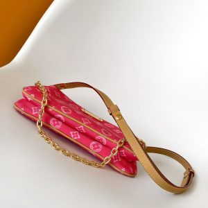 p500 M14159 Pink Top-Grade Authentic Monogram Denim Liv Pochette hugs the arm. It features a detachable gold chain and a detachable, adjustable double strap crafted from Louis Vuitton’s signature natural cowhide leather. A secure double zipper closure and engraved gold-tone hardware add the finishing touches to this stylish accessory.Size: 24x13x6.5cm