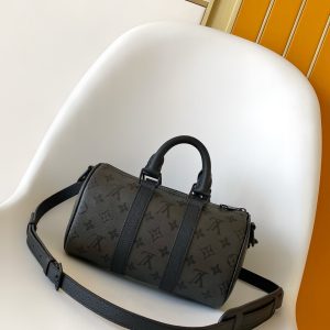 p590M26930. M27161 M26818 M13166 Yellow M12684 Green Top-tier Authentic Original Dynamic Variable Code This Keepall Bandoulière 25 handbag distills the classic Keepall travel bag design, reinterpreted in Pharrell Williams’ Monogram Surfin’ canvas for urban sophistication.The intricate pattern blends vibrant summer elements, exuding tropical flair and retro charm. The detachable shoulder strap and rolled leather handle offer versatile carrying options.25.0 x 15.0 x 11.0 cm (L x H x W) • Monogram Surfin’ coated canvas • Calf leather trim • Fabric lining • Polished metal hardware • Zippered main compartment • Detachable nameplate • Shoulder strap: Detachable, adjustable •Shoulder strap half-length: 55.0 cm • Shoulder strap half-length adjustable to: 63.0 cm • Handles: Dual handles