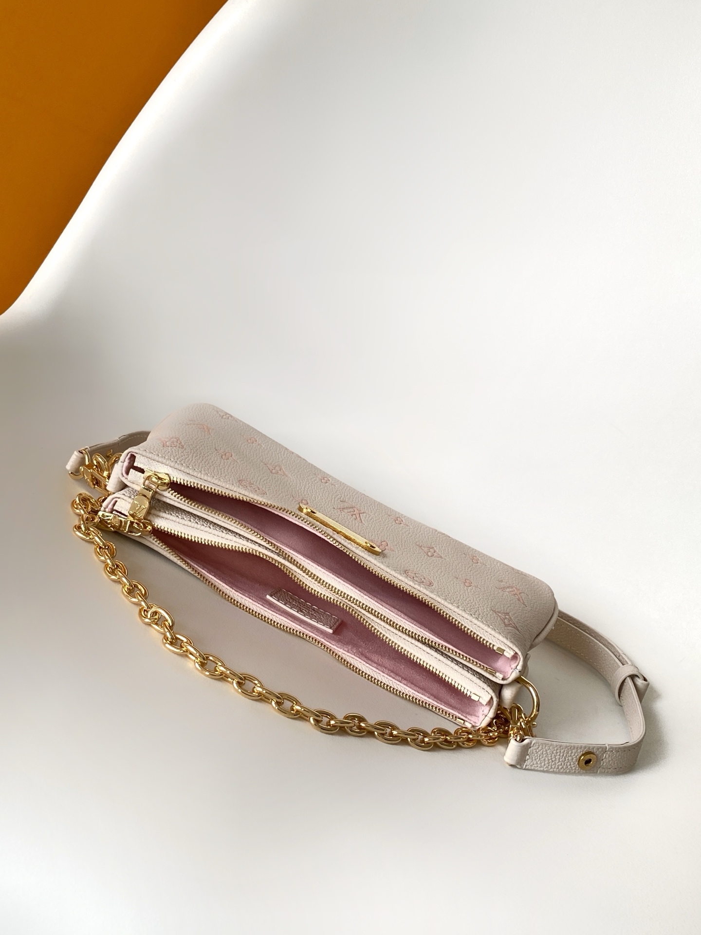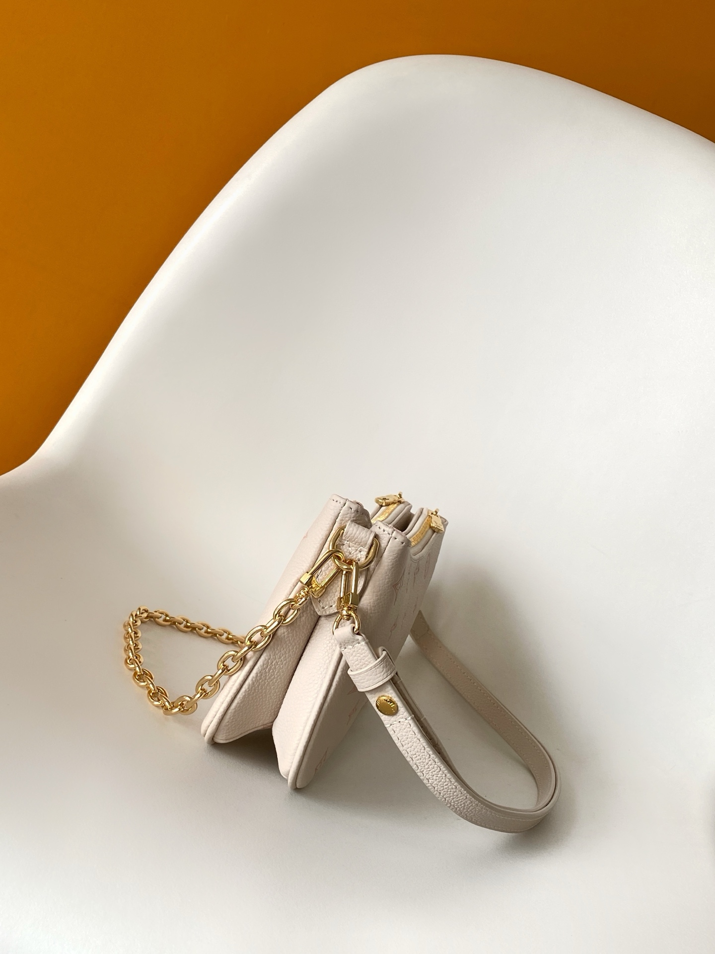p600M83301 Black M11916 Sand M25816 Grey-Green Top-grade Authentic Dynamic Variable Code The Monogram Empreinte leather Liv pochette hugs the arm. It features a detachable gold chain and a detachable, adjustable double strap crafted from Louis Vuitton’s signature natural cowhide leather.A secure double zipper closure and engraved gold-tone hardware add finishing touches to this stylish accessory. Size: 24x13x6.5cm