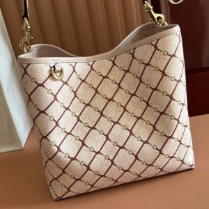 p640🔥【Full Counter Packaging】The GG Emblem collection reinterprets the brand’s timeless elegance and masterful craftsmanship. This bucket bag features GG monogrammed coated fabric with stirrup motifs, while its webbing cotton lining and internal compartments enhance practicality.Pink and Gucci Encarna Red GG monogram coated fabric Pink leather trim Light gold-tone hardware Pink cotton-linen lining Includes D-ring for attaching removable accessories Interior: Two compartments and one central snap-closure compartment Hook-and-loop closure Top handle (Height: 14 cm) Removable, adjustable leather shoulder strap (Height: 52 cm – 57.5 cm; length: 107 cm – 114 cm) Magnetic snap closure Model: 815103 Dimensions: 25 cm (width) x 25 cm (height) x 15 cm (depth) Weight: approx. 0.45 kg Color: Pink/Ancora Red Made in Italy