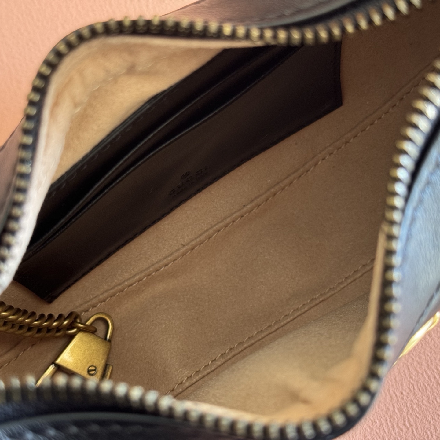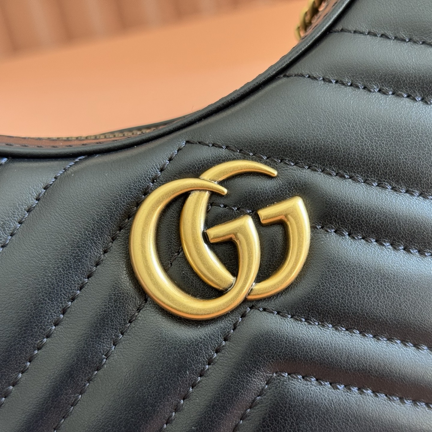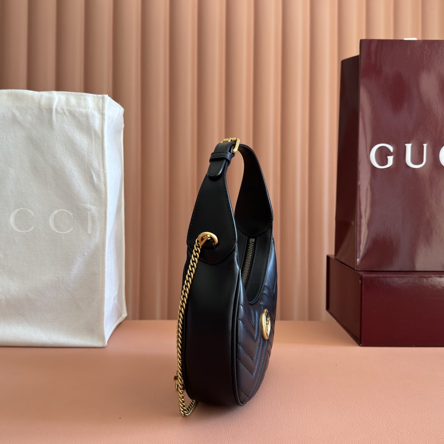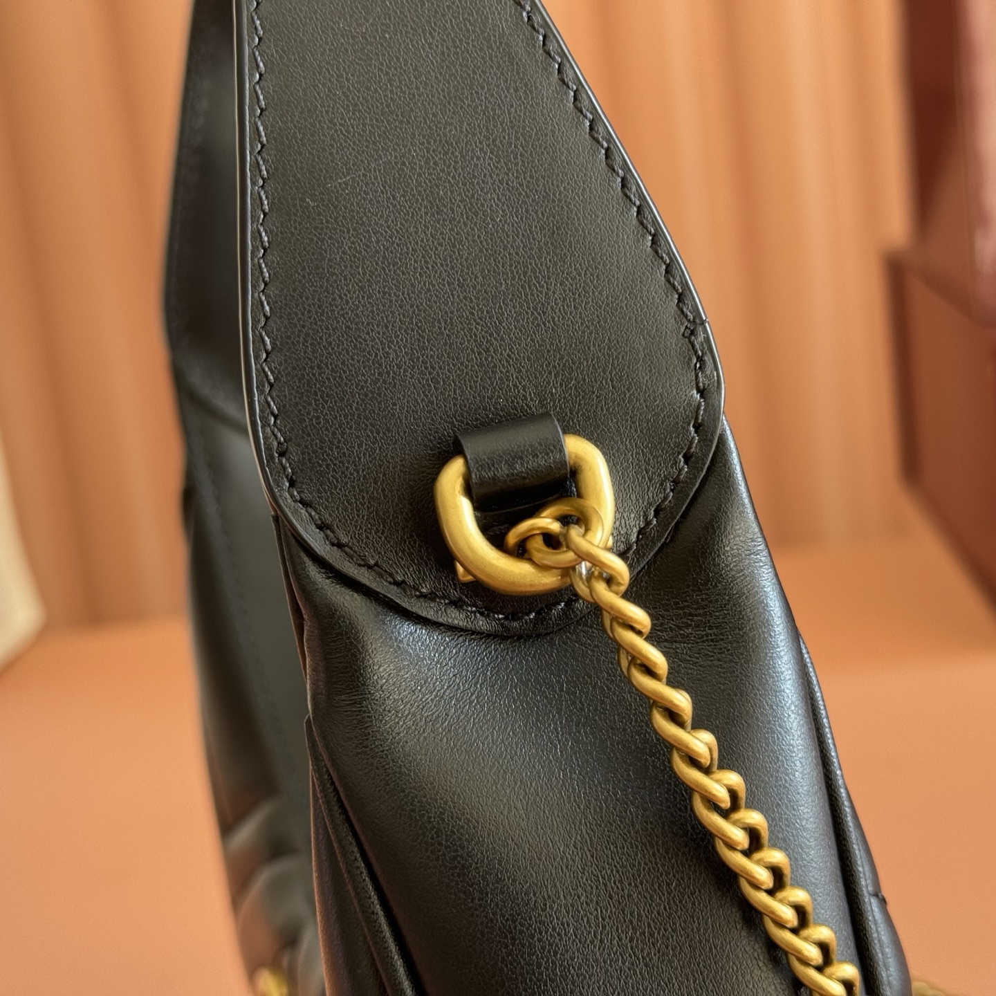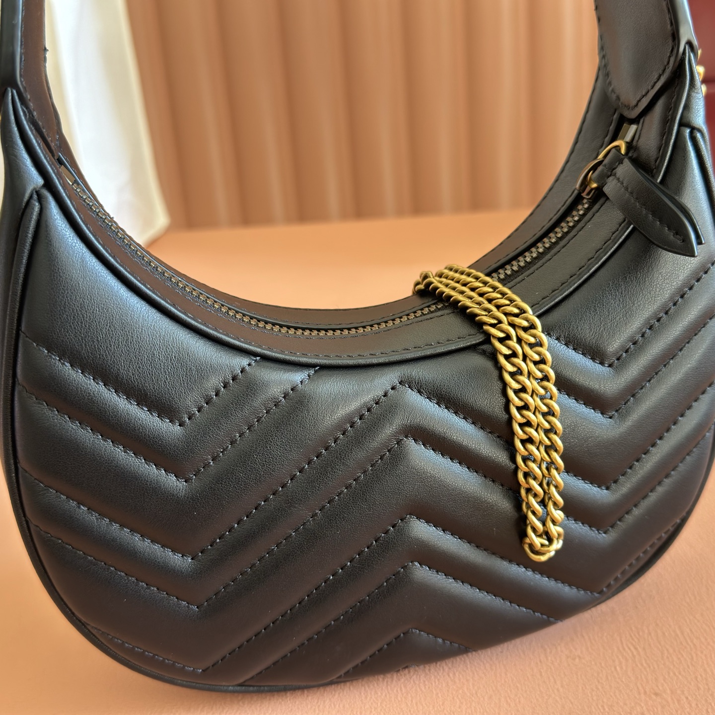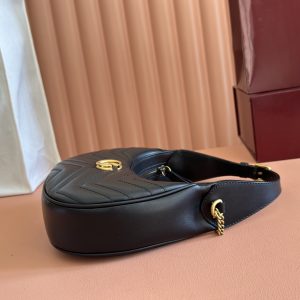 p710. 📣📣📣【Genuine Leather with 🌈 Configuration & Full Boutique Packaging】🔥🔥 This mini handbag features a crescent silhouette and richly textured black leather, exuding a strong vintage aesthetic.Blending vintage elements with archival designs or contemporary details, it presents a timelessly renewed aesthetic. Every detail reflects the brand’s deep fascination with its heritage, and this compact accessory is no exception. Crafted from boutique-quality soft natural full-grain cowhide leather with premium smooth polished bronze hardware. Model: 699514 Dimensions: 21x11x5cm Color: Black