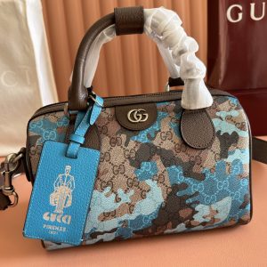 p770💋💋💋【Original Retail Packaging】Vibrant camouflage meets distinctive color combinations, reimagining the iconic GG motif. Crafted from marble-effect GG monogram coated fabric, this travel bag features a matching identity tag.