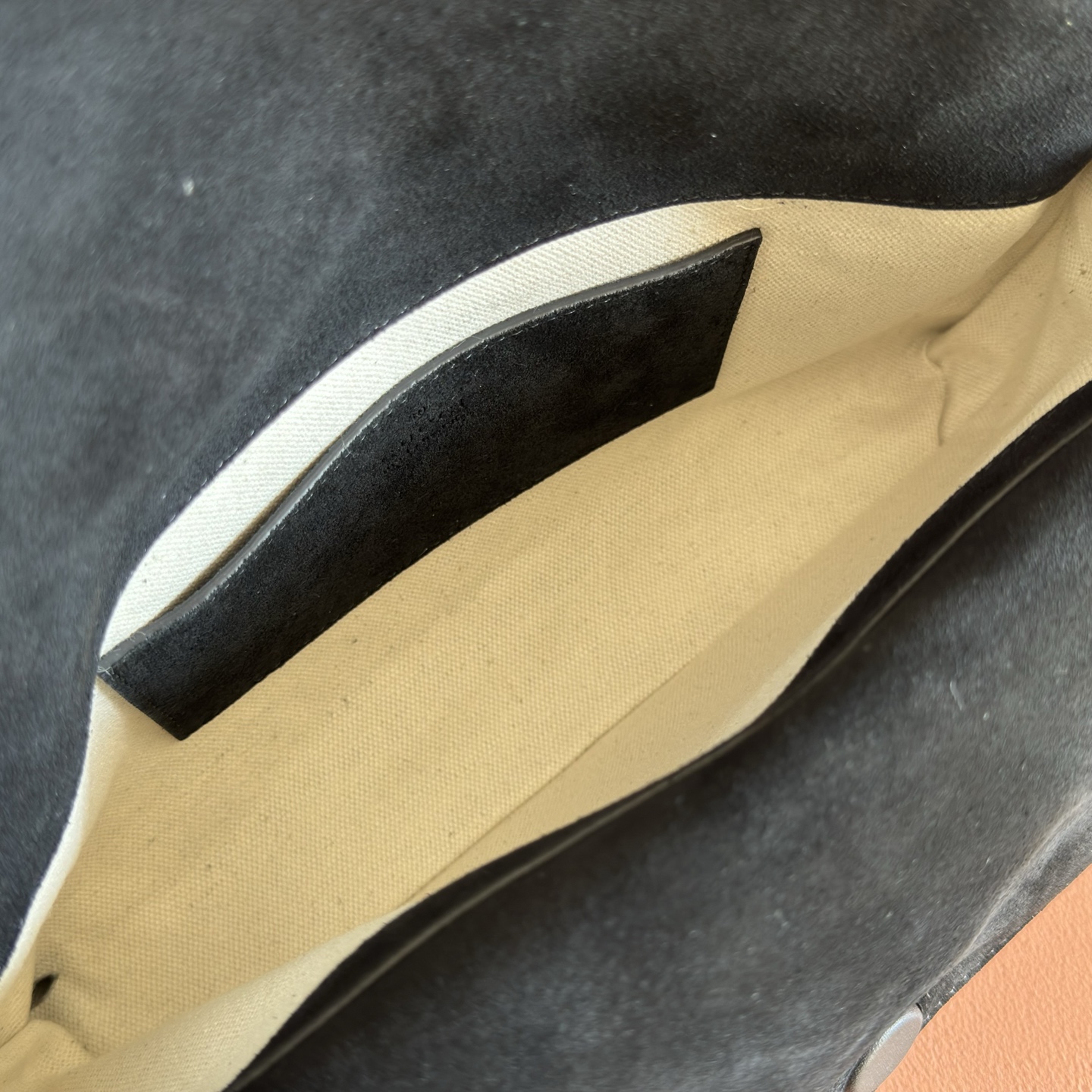 Detachable, adjustable leather shoulder strap (height: 40 cm – 46 cm; length: 87 cm – 97 cm)