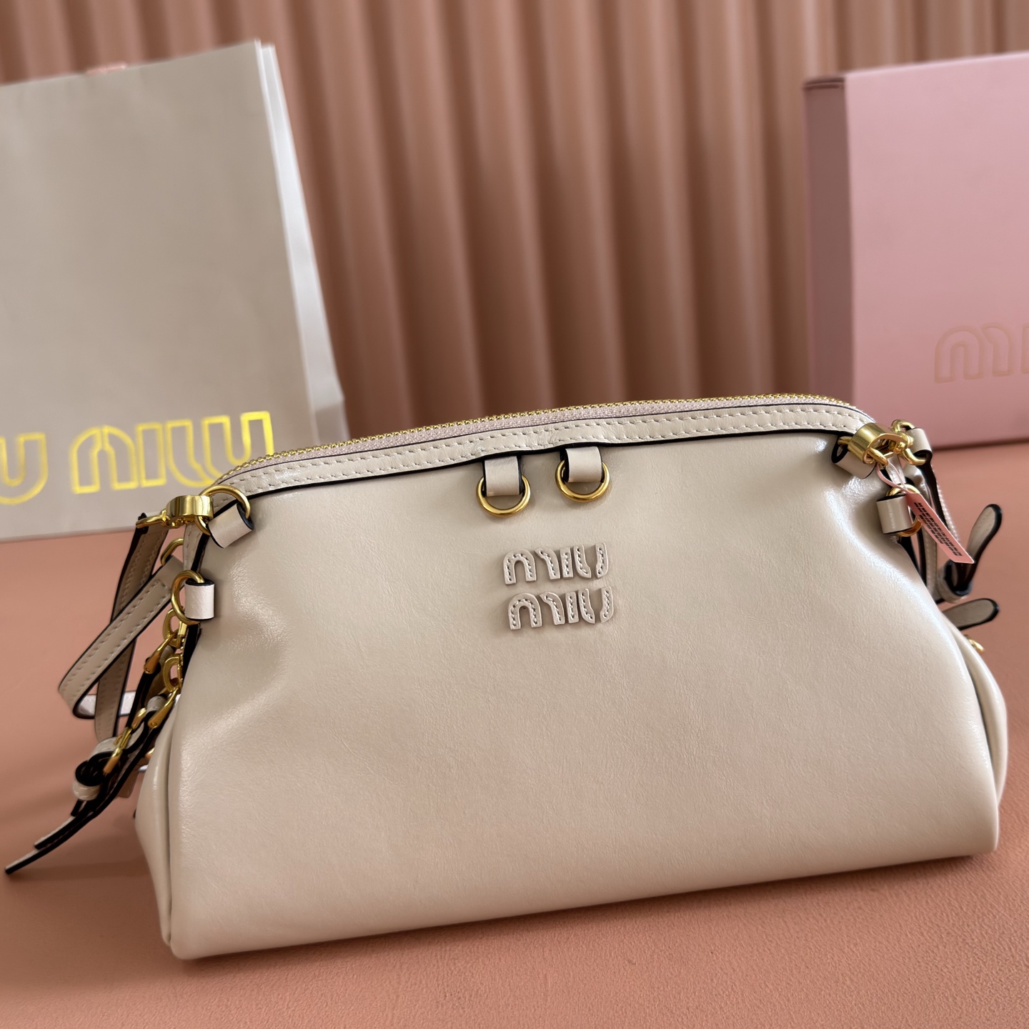 p930💋💋💋【Original Retail Packaging】Cowhide Mini Clutch ~ Its refined sheen elevates the sleek lines of this clutch, blending runway inspiration with modern femininity to strike a balance between stylistic experimentation and sophisticated versatility.~Two detachable adjustable shoulder straps~Gold-tone hardware~Zipper closure~Lined interior with patch pocket~Front lettering logo Dimensions: W24 × H14 × D8.5 cm Style No.: 5BF131