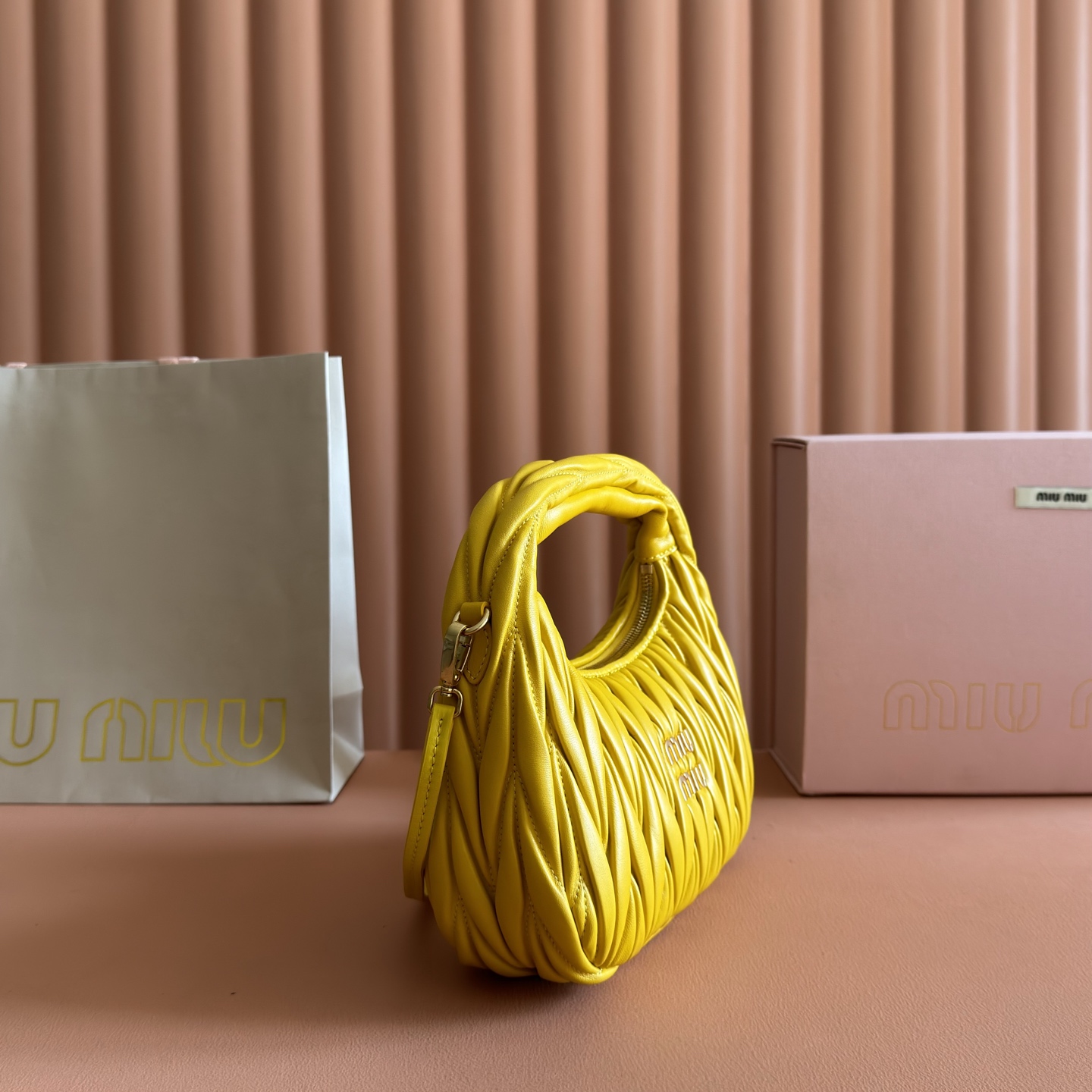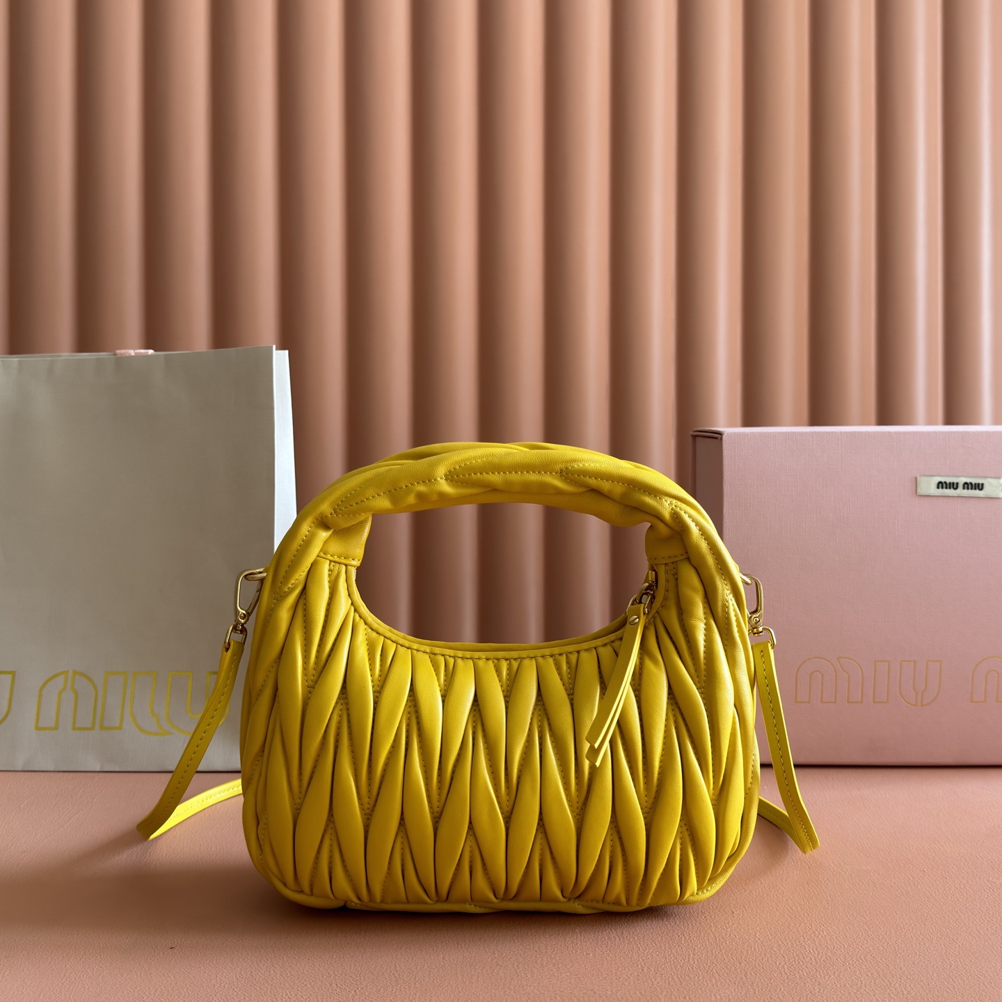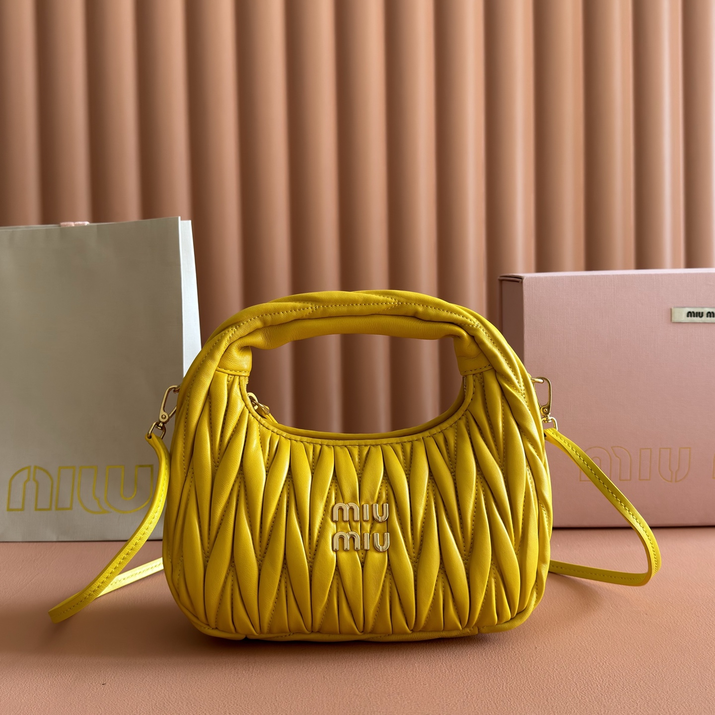 p930💋💋💋【Premium Genuine Leather】Wander Matelasse Lambskin Hobo Tote/Crossbody Bag~The Wander tote has become a classic accessory. Crafted from Matelasse lambskin, this mini handbag employs exquisite techniques to create a three-dimensional effect, exuding refined elegance.Featuring a hobo silhouette that blends vintage charm with contemporary elegance, it has become the new symbol of modern femininity. ~ Gold-tone hardware ~ Zipper closure ~ Metal logo engraving on front ~ Cotton satin lining Dimensions: W23 × H13 × D7 cm Style No.: _5BC125