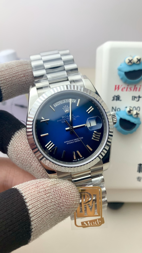 PPM Mods Weighted DD – Ceiling-Level ‘Rolex DD Day-Date’ PPM’s replica redefines the weighted DD version, meticulously replicating every detail from genuine original molds—be it bracelet color, dial hue, watch weight, or thickness. The bracelet incorporates ceramic tubes compatible with authentic models. This is no compromise replica; it represents a comprehensive leap in materials and craftsmanship!Rejecting “market-grade” imitations, every gram of weight (precise 209g-212g) and every millimeter of thickness fights for the dignity of the original.