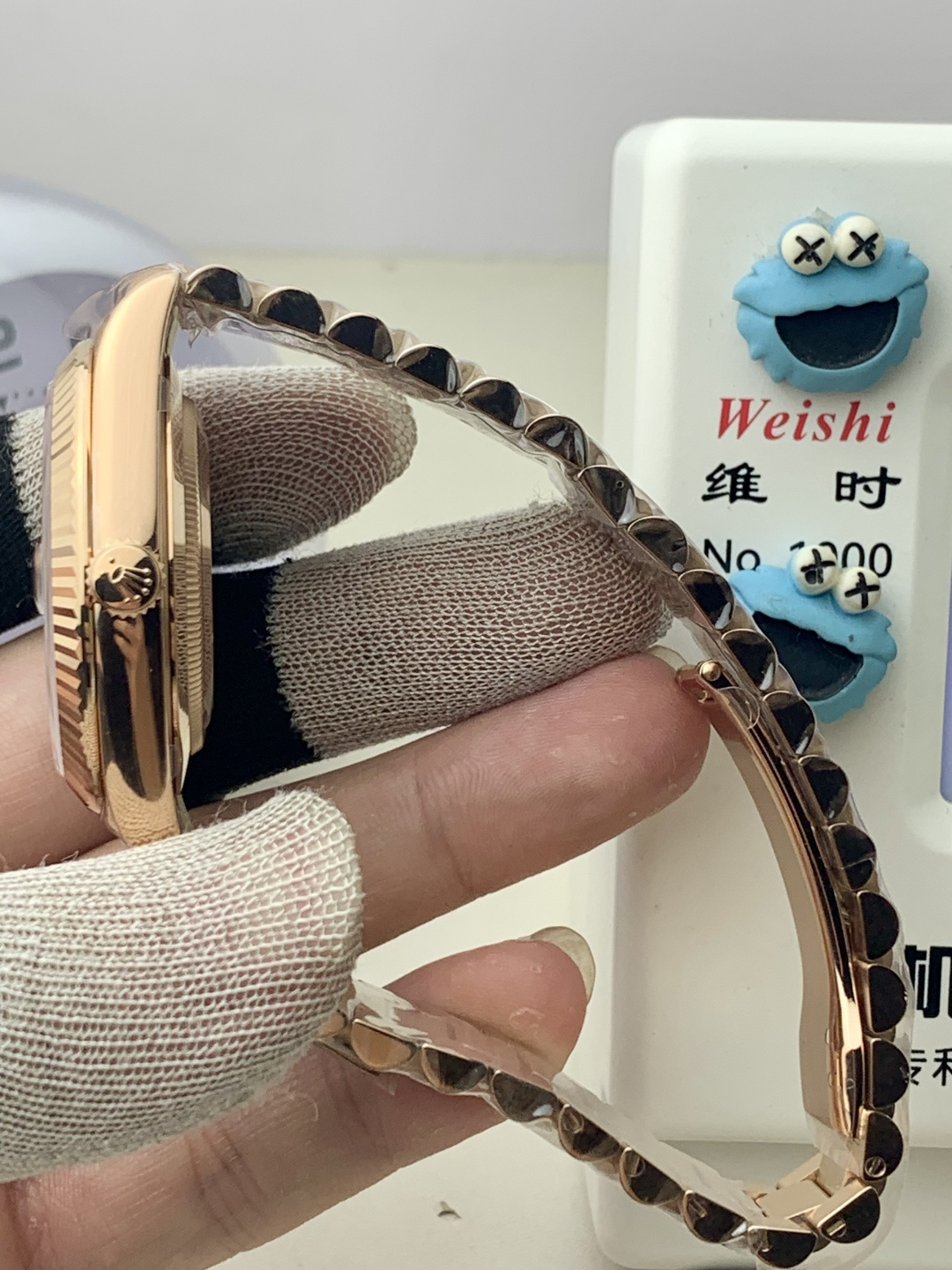 PPM Mods Weighted DD – Ceiling-Level ‘Rolex DD Day-Date’ PPM’s replica redefines the weighted DD version, featuring genuine original molds for strap color, dial color, watch weight, and thickness. The strap incorporates ceramic tubes compatible with authentic models—this is not a compromised replica, but a comprehensive leap in materials and craftsmanship!Rejecting “market-grade” imitations, every gram of weight (precise 209g-212g) and every millimeter of thickness fights for the dignity of the original. Bracelet: Authentic 3mm thickness Weight: Approx. 107g (non-extended) 🈚 Ceramic tube version ±1-2g.Case: Original thickness: 12.3mm (non-thickened) Weight: Original 3255: 102g; Optional 2836: ±1g. Full series total weight: 209g-212g. ⚠️”Excludes diamond bezel models.” Authentic thickness achieved through monolithic forging of high-density aerospace-grade military alloy, hardness rivaling 18K gold!Exclusive vacuum ion-plated gold technology delivers a luster infinitely close to 18K gold’s unique warm texture, offering scratch resistance and durability. Precisely replicates every link’s shape, thickness, and curvature of the genuine strap. Dial: Features original-grade raised ink, matching the top-tier dial craftsmanship of the factory. Sharp hands, full hour markers, and uniform luminescence.Movement options: Premium Edition 2836 or 3255 integrated movement (±72-hour power reserve) available for your selection!