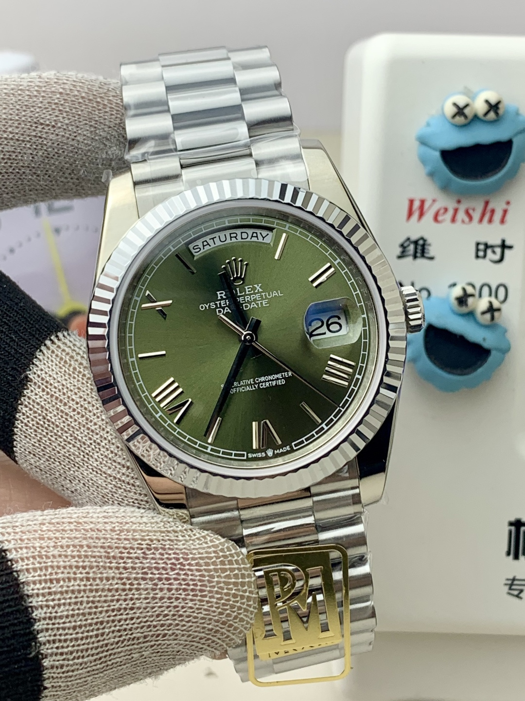 PPM Mods Weighted DD – Ceiling-Level ‘Rolex DD Day-Date’ PPM’s replica redefines the weighted DD version, meticulously replicating every detail from genuine original molds—be it bracelet color, dial hue, watch weight, or thickness. The bracelet incorporates ceramic tubes compatible with authentic models. This is no compromise replica; it represents a comprehensive leap in materials and craftsmanship!Rejecting “market-grade” imitations, every gram of weight (precise 209g-212g) and every millimeter of thickness fights for the dignity of the original.
