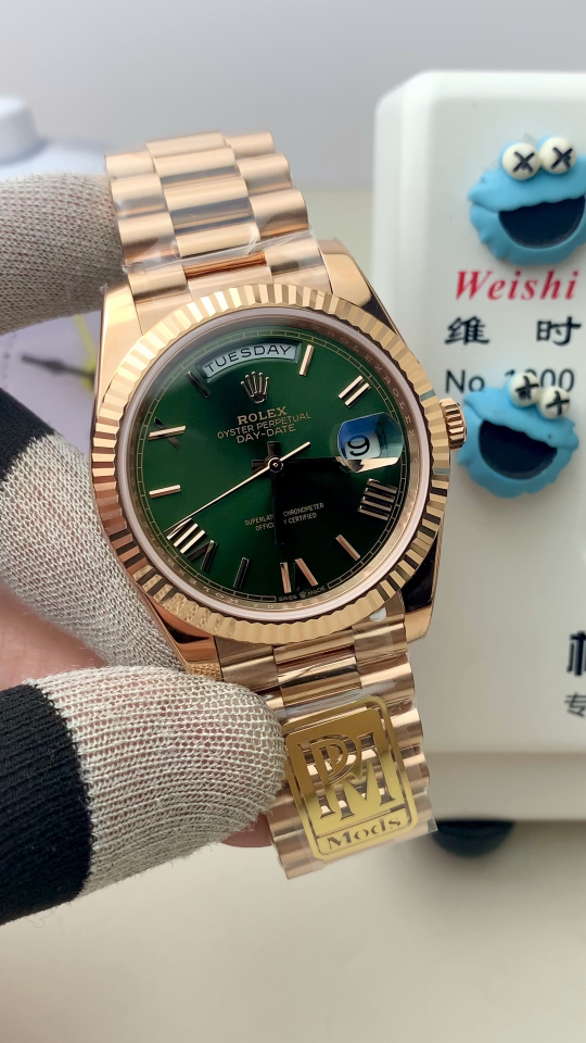 PPM Mods Weighted DD – Ceiling-Level ‘Rolex DD Day-Date’ PPM’s replica redefines the weighted DD version, featuring genuine original molds for strap color, dial color, watch weight, and thickness. The strap incorporates ceramic tubes compatible with authentic models—this is no compromise replica, but a comprehensive leap in materials and craftsmanship!Rejecting “market-grade” imitations, every gram of weight (precise 209g-212g) and every millimeter of thickness fights for the dignity of the original.