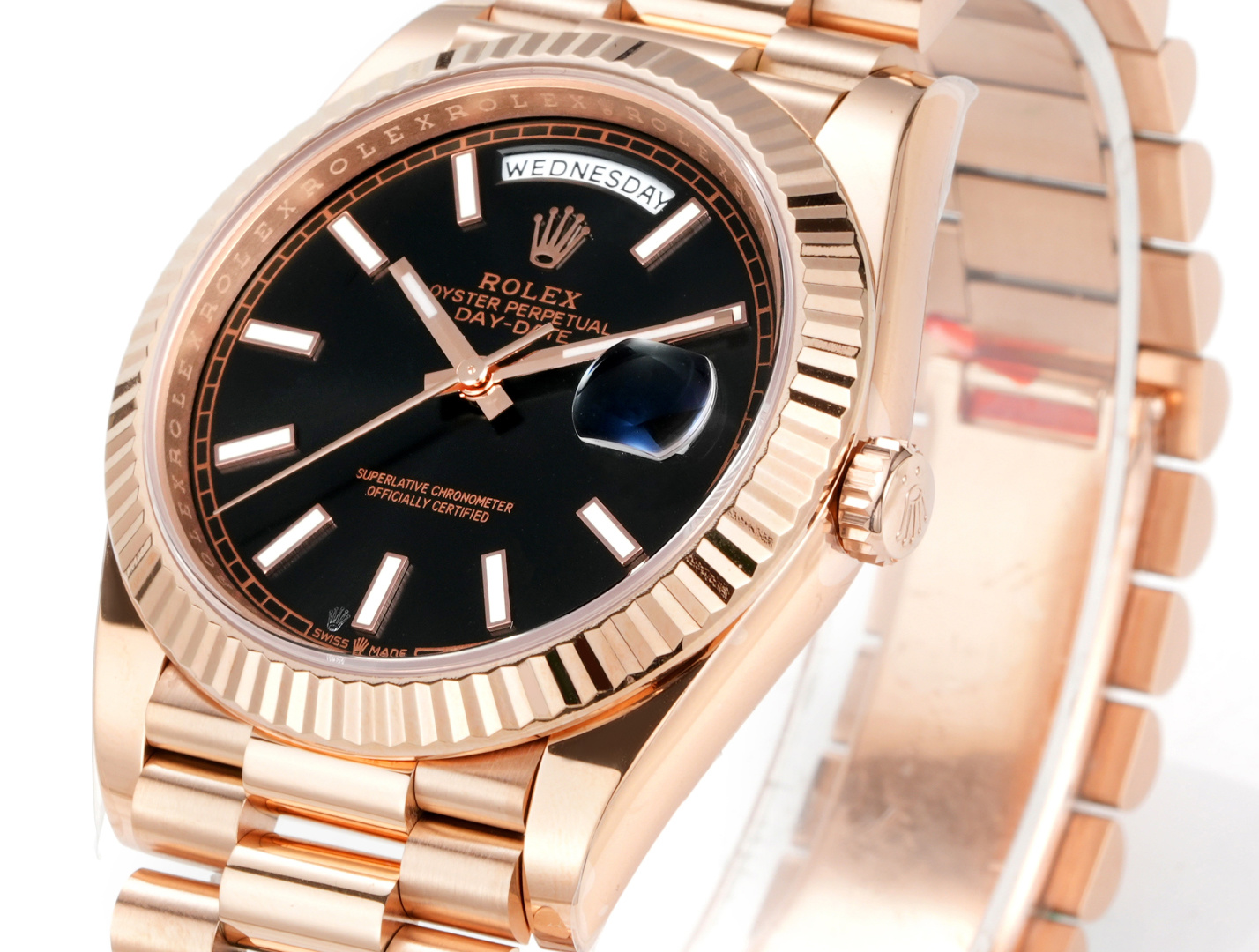 PPM Mods Weighted DD – Ceiling-Level ‘Rolex DD Day-Date’ PPM’s replica redefines the weighted DD version, featuring genuine original molds for strap color, dial color, watch weight, and thickness. The strap incorporates ceramic tubes compatible with authentic models—this is not a compromised replica, but a comprehensive leap in materials and craftsmanship!Rejecting “market-grade” imitations, every gram of weight (precise 209g-212g) and every millimeter of thickness fights for the dignity of the original. Bracelet: Authentic 3mm thickness Weight: Approx. 107g (non-extended) 🈚 Ceramic tube version ±1-2g.Case: Original thickness: 12.3mm (non-thickened) Weight: Original 3255: 102g; Optional 2836: ±1g. Full series total weight: 209g-212g. ⚠️”Excludes diamond bezel models.” Authentic thickness achieved through monolithic forging of high-density aerospace-grade military alloy, hardness rivaling 18K gold!Exclusive vacuum ion-plated gold technology delivers a luster infinitely close to 18K gold’s signature warm texture, offering scratch resistance and durability. Precisely replicates every link’s shape, thickness, and curvature of the genuine strap. Dial: Features original-grade raised ink, matching the top-tier dial craftsmanship of the factory. Sharp hands, full hour markers, and uniform luminescence.Movement options: Premium Edition 2836 or 3255 integrated movement (±72-hour power reserve) available for your selection!