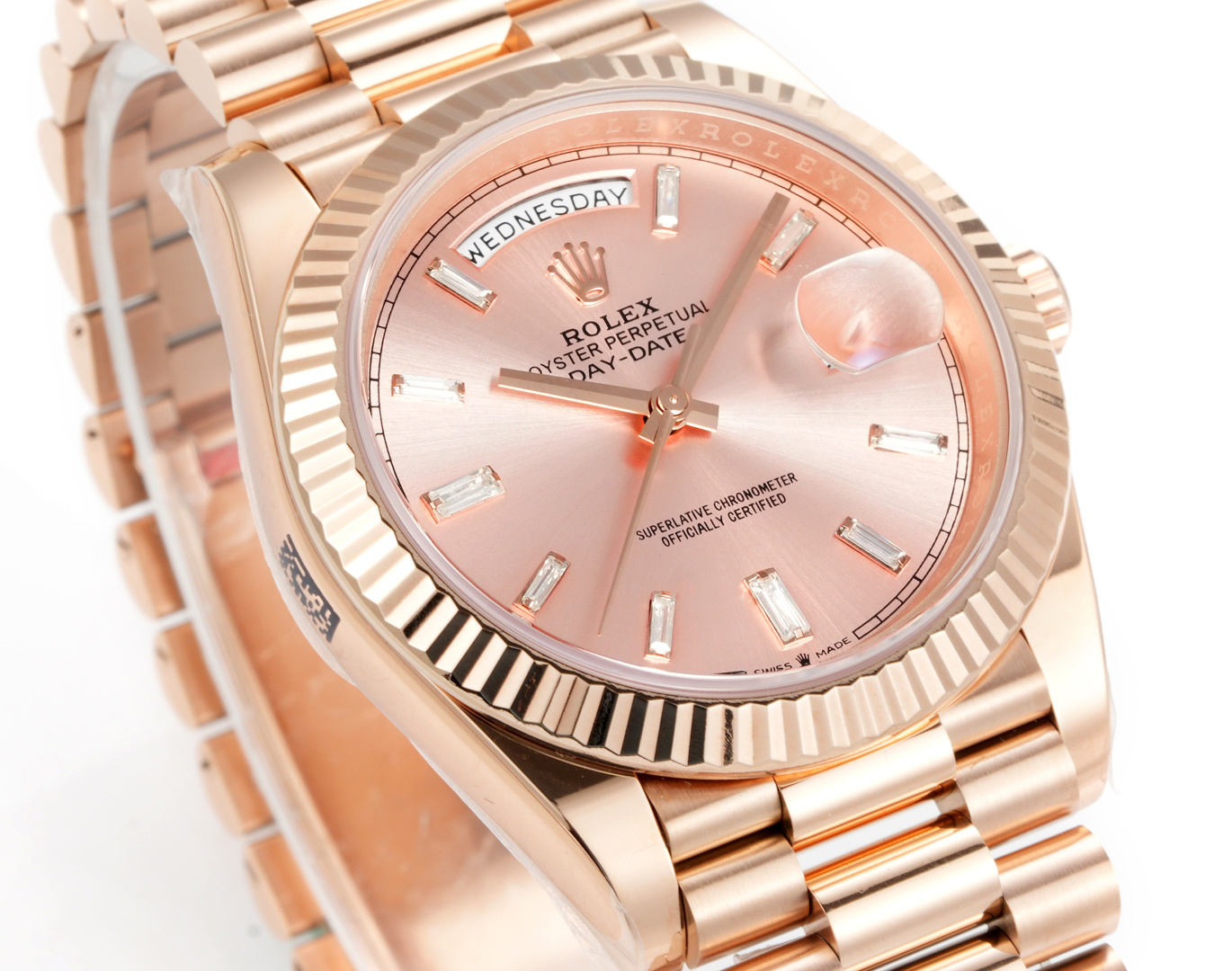 PPM Mods Weighted DD – Ceiling-Level ‘Rolex DD Day-Date’ PPM’s replica redefines the weighted DD version, featuring genuine original molds for strap color, dial color, watch weight, and thickness. The strap incorporates ceramic tubes compatible with authentic models—this is not a compromised replica, but a comprehensive leap in materials and craftsmanship!Rejecting “market-grade” imitations, every gram of weight (precise 209g-212g) and every millimeter of thickness fights for the dignity of the original. Bracelet: Authentic 3mm thickness Weight: Approx. 107g (non-extended) 🈚 Ceramic tube version ±1-2g.Case: Original thickness: 12.3mm (non-thickened) Weight: Original 3255: 102g; Optional 2836: ±1g. Full series total weight: 209g-212g. ⚠️”Excludes diamond-bezel models.” Authentic thickness achieved through monolithic forging of high-density aerospace-grade military alloy, hardness rivaling 18K gold!Exclusive vacuum ion-plated gold technology delivers a luster infinitely close to 18K gold’s unique warm texture, offering scratch resistance and durability. Precisely replicates every link’s shape, thickness, and curvature of the genuine strap. Dial: Features original three-dimensional ink, matching the top-tier dial craftsmanship of the factory. Sharp hands, full hour markers, and uniform luminous coating.Movement options: Premium Edition 2836 or 3255 integrated movement (±72-hour power reserve) available for your selection!