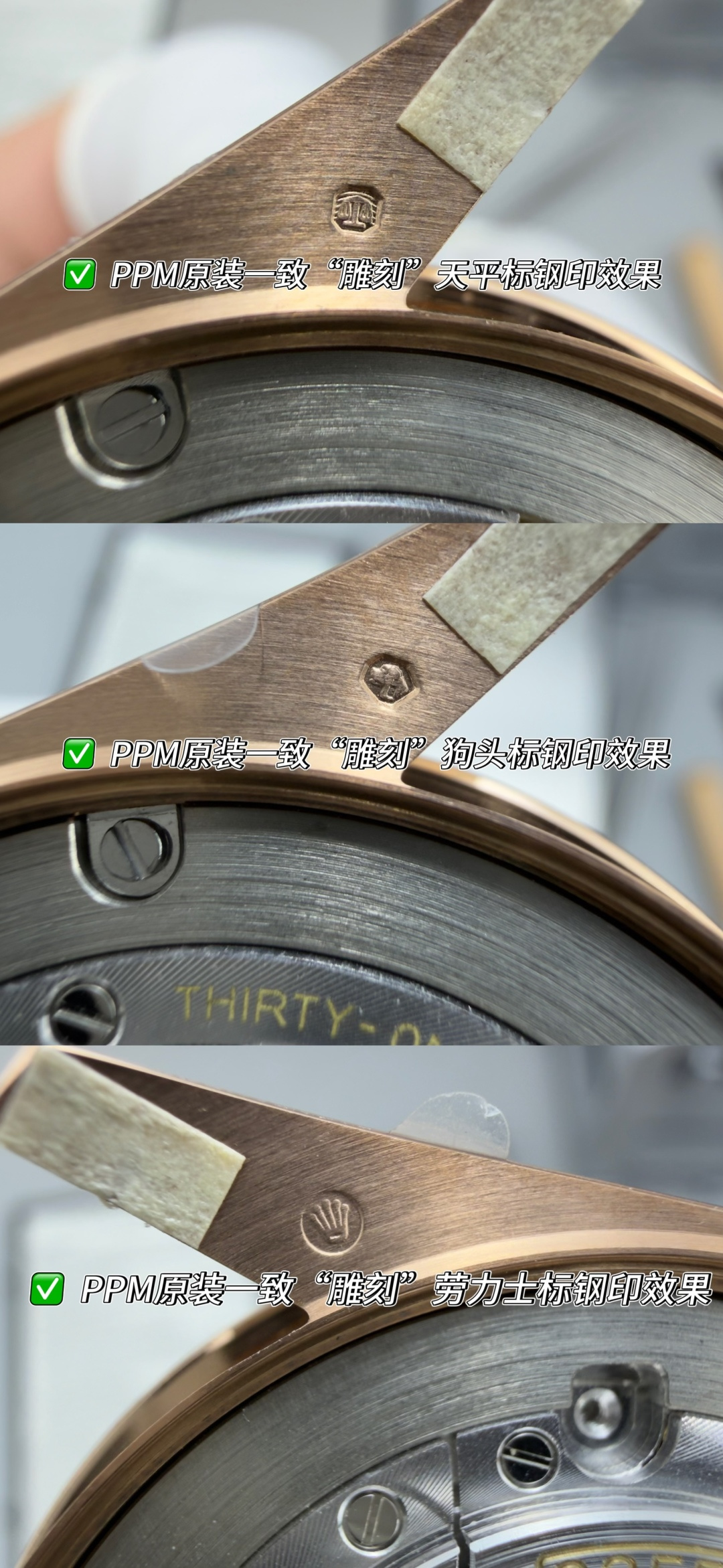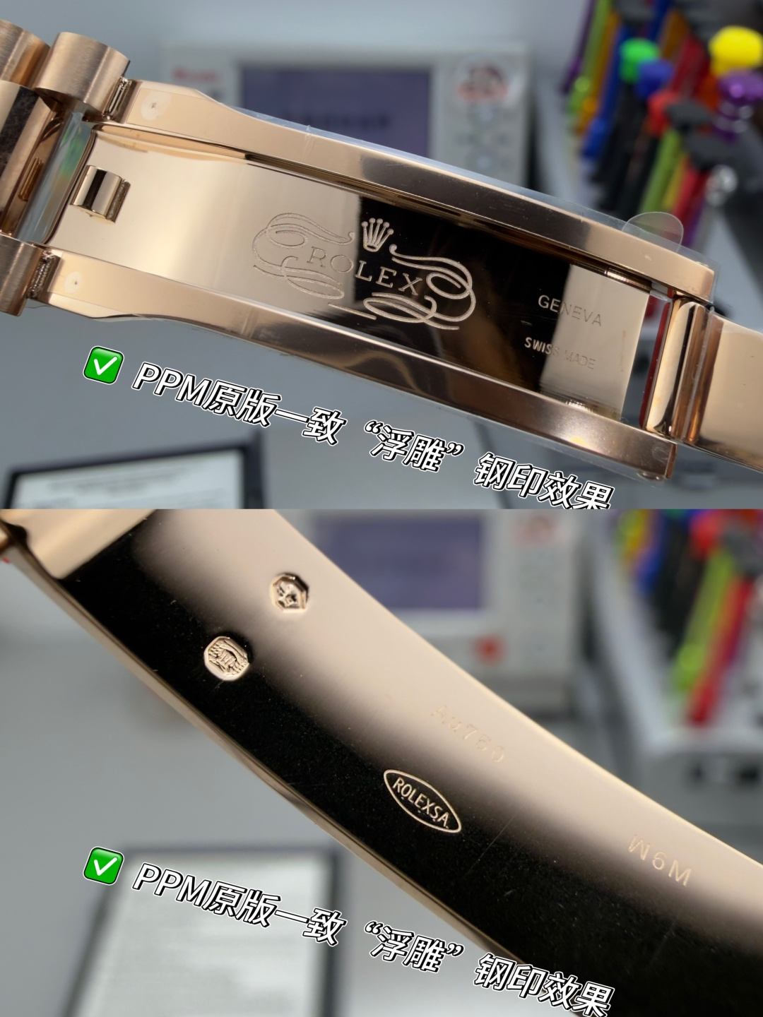 PPM Mods Weighted DD – Ceiling-Level ‘Rolex DD Day-Date’ PPM’s replica redefines the weighted DD version, featuring genuine original molds for strap color, dial color, watch weight, and thickness. The strap incorporates ceramic tubes compatible with authentic models—this is not a compromised replica, but a comprehensive leap in materials and craftsmanship!Rejecting “market-grade” imitations, every gram of weight (precise 209g-212g) and every millimeter of thickness fights for the dignity of the original. Bracelet: Authentic 3mm thickness Weight: Approx. 107g (non-extended) 🈚 Ceramic tube version ±1-2g.Case: Original thickness: 12.3mm (non-thickened) Weight: Original 3255: 102g; Optional 2836: ±1g. Full series total weight: 209g-212g. ⚠️”Excludes diamond-bezel models.” Authentic thickness achieved through monolithic forging of high-density aerospace-grade military alloy, with hardness rivaling 18K gold!Exclusive vacuum ion-plated gold technology delivers a luster infinitely close to 18K gold’s signature warm texture, offering scratch resistance and durability. Precisely replicates every link’s shape, thickness, and curvature of the genuine strap. Dial: Features original-grade raised ink, matching the top-tier dial craftsmanship of the factory. Sharp hands, full indices, and uniform luminescence.Movement options: Premium Edition 2836 or 3255 integrated movement (±72-hour power reserve) available for your selection!