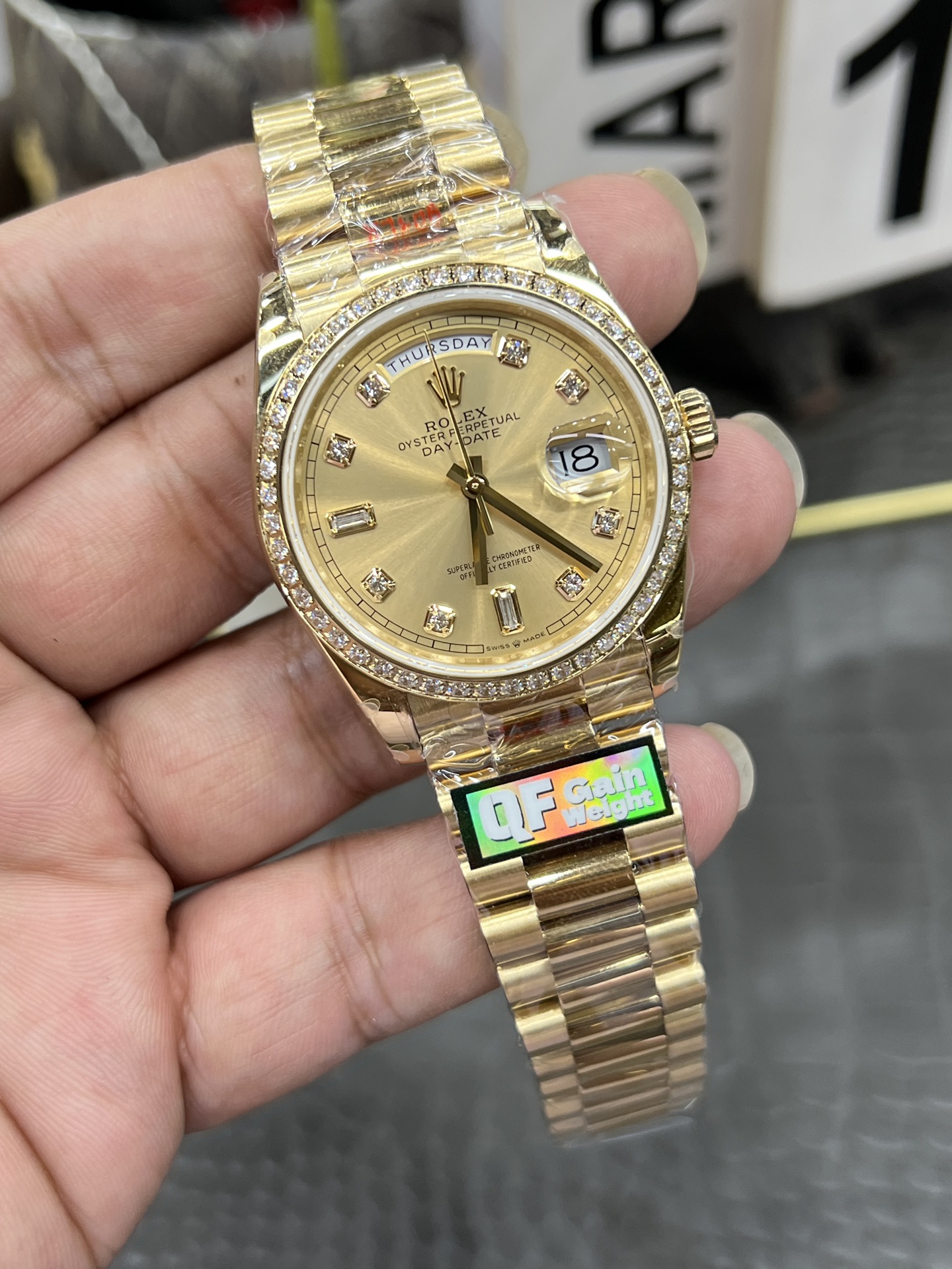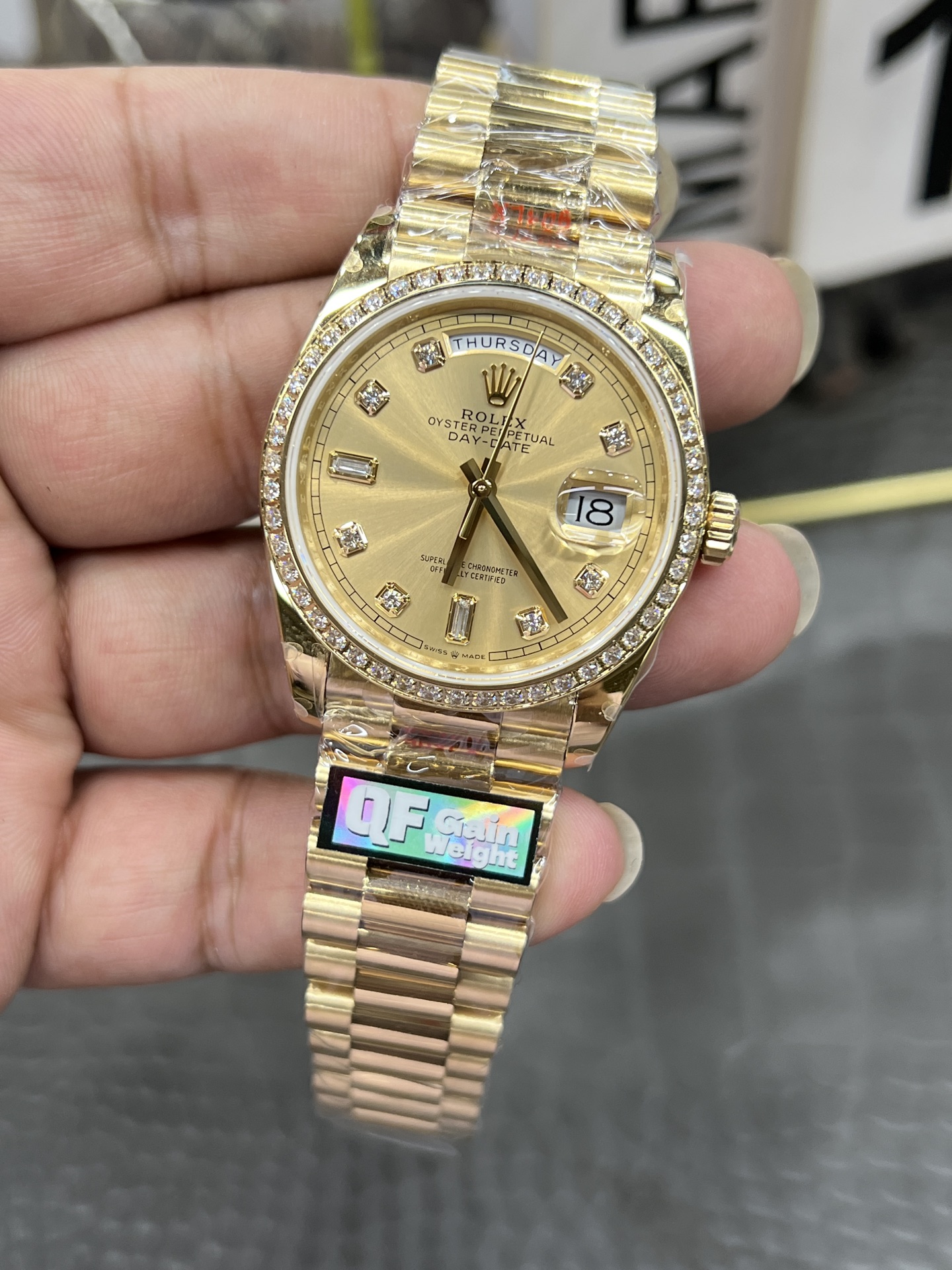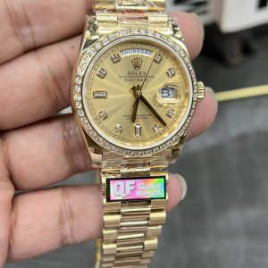 QF Rolex Day-Date Series / 36mm Solid Gold Diamond Bezel Yellow Ice Sugar Weighted Version 156g / Powered by Seagull 2836 Automatic Mechanical Movement
