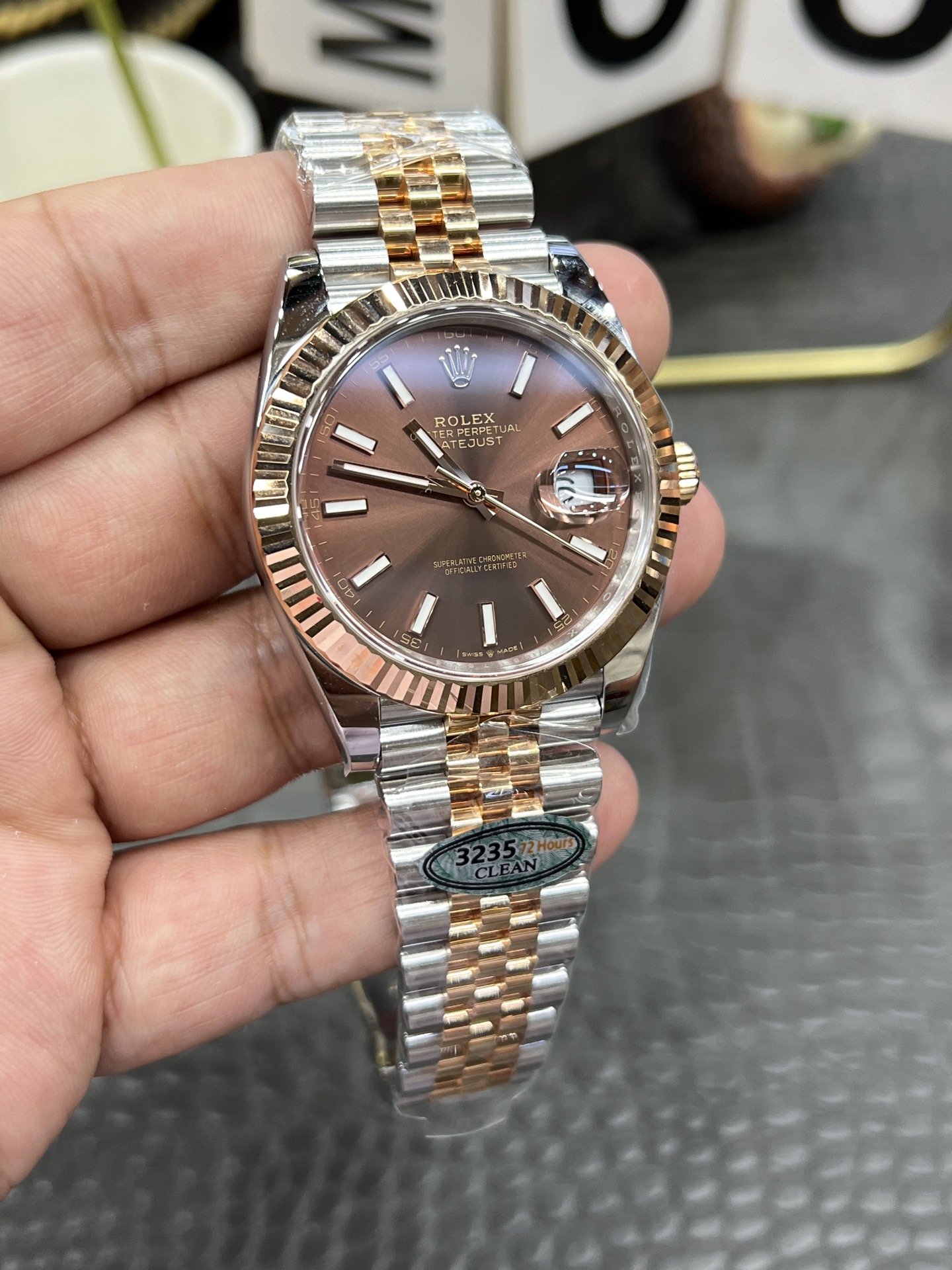 Rolex Datejust Series / 41mm Rose Gold with Coffee Dial / Powered by Shanghai 3235 Modified Dandong Automatic Mechanical Movement