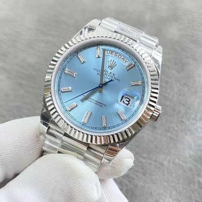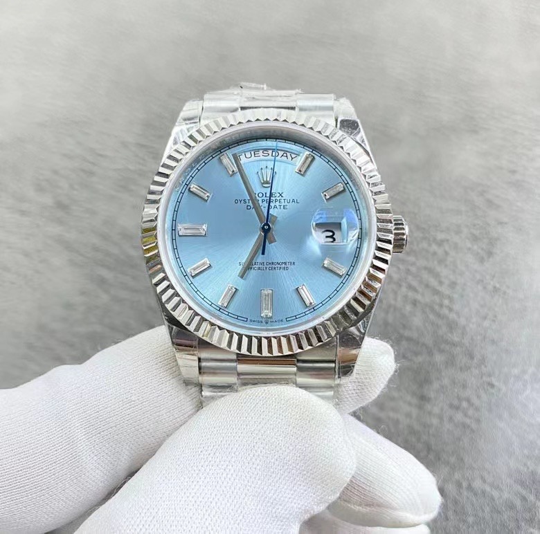 Rolex Day-Date collection watch, powered by the 2836 movement. Exclusive real-life photos—truly substantial in the hand. Crystal-clear glass, authentic date display, hands with central pivots, and a distinctly three-dimensional bezel. Ready to wear right out of the box with exceptional feel. Say goodbye to lightweight watches forever. Weighted version, just as substantial as the boutique model! 40mm diameter, crafted by GM Factory.