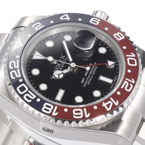 Rolex GMT-Master II Upgrade Edition. Crafted from authentic 904L steel matching genuine models, featuring an integrated ceramic bezel with platinum lettering identical to the original. Accessories compatible with genuine parts. 904L steel case and bracelet, sapphire crystal, superluminova, bidirectional ceramic rotating bezel, folding clasp.