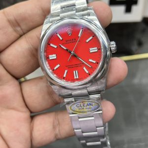 Rolex Oyster Perpetual Replica / 36mm Red Dial / Powered by Shanghai 3230 Automatic Mechanical Movement