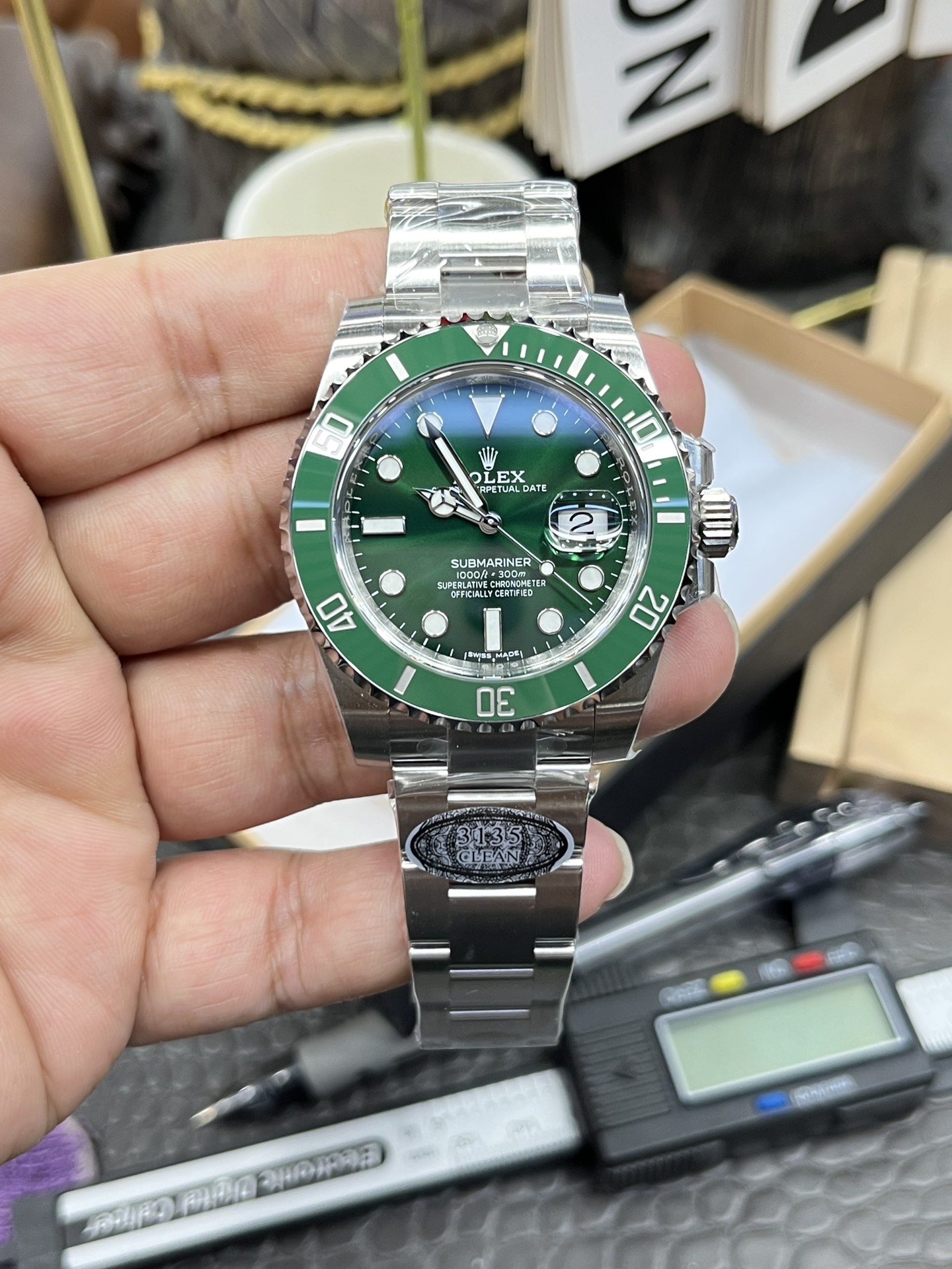 Rolex Submariner “Green Ghost” / 40mm Submariner “Green Water Ghost” / Shanghai Movement Modified to Dandong 3135 Automatic Mechanical