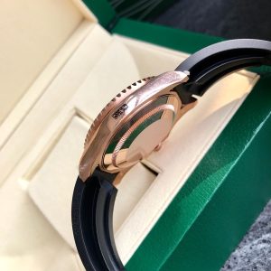 Rolex, sweetie! We’ve replaced the colored diamonds on the case with Swarovski crystals—the effect rivals the original! A truly gold watch has arrived! Fully plated in 18k rose gold! When it comes to the most popular model in the Yacht-Master series, it’s undoubtedly the 116655 with Oysterflex bracelet—commonly known as the “Gold Yacht-Master.”This watch boasts a luxurious design featuring an 18k rose gold case and a Cerachrom black ceramic bezel, making it highly appealing. The 40mm dial includes a magnified date window for easy reading.The patented Oysterflex bracelet incorporates elastic titanium-nickel alloy links internally, connecting to the case and Oysterlock clasp, while externally wrapped in high-performance black rubber. This superior texture ensures exceptional comfort. Rolex’s reputation as a “timeless investment” stems not only from its durability and remarkable value retention but also its industry-leading precision.This Yacht-Master is powered by a genuine Swiss ETA movement, backed by a lifetime warranty! Rolex’s iconic design and masterful craftsmanship remain highly sought-after in the market. The Yacht-Master represents a premium sports watch category, with an official retail price in China reaching 195,100 yuan.True to its Yacht-Master name, it exudes a sense of distinguished prestige. Includes an extra rubber strap! Shipped with full packaging!