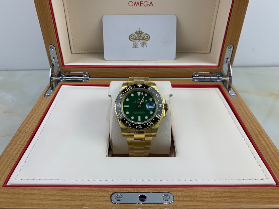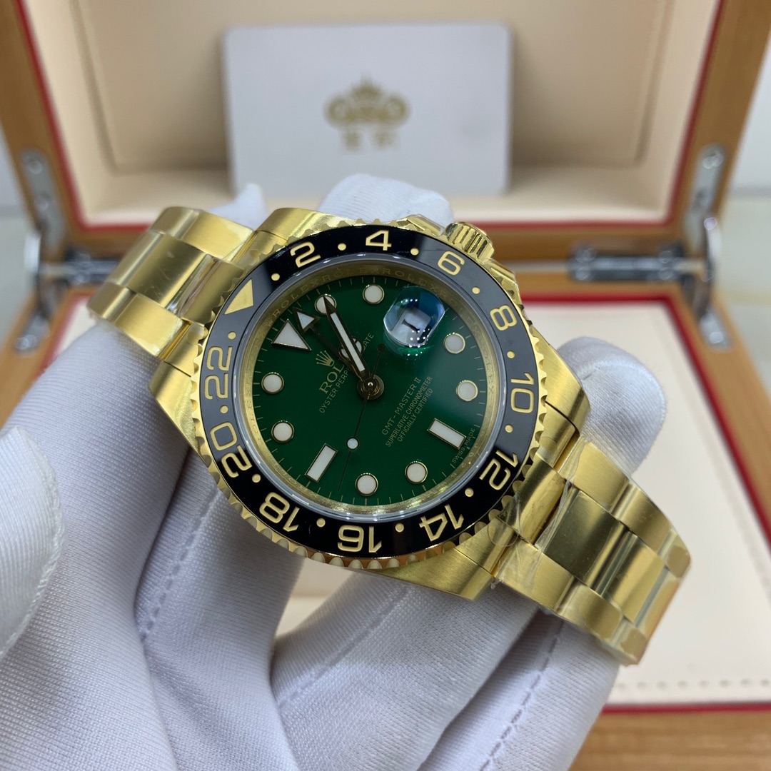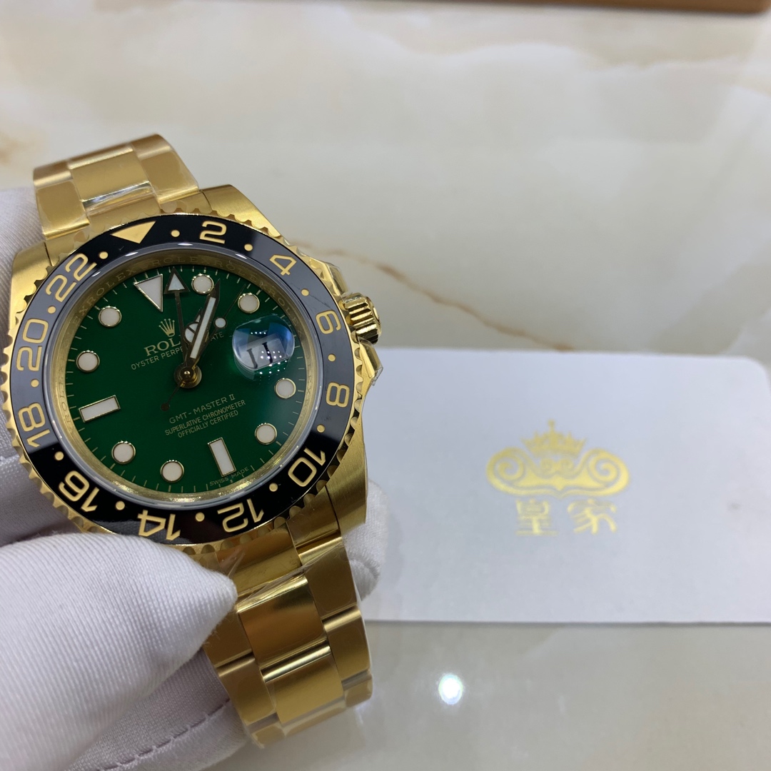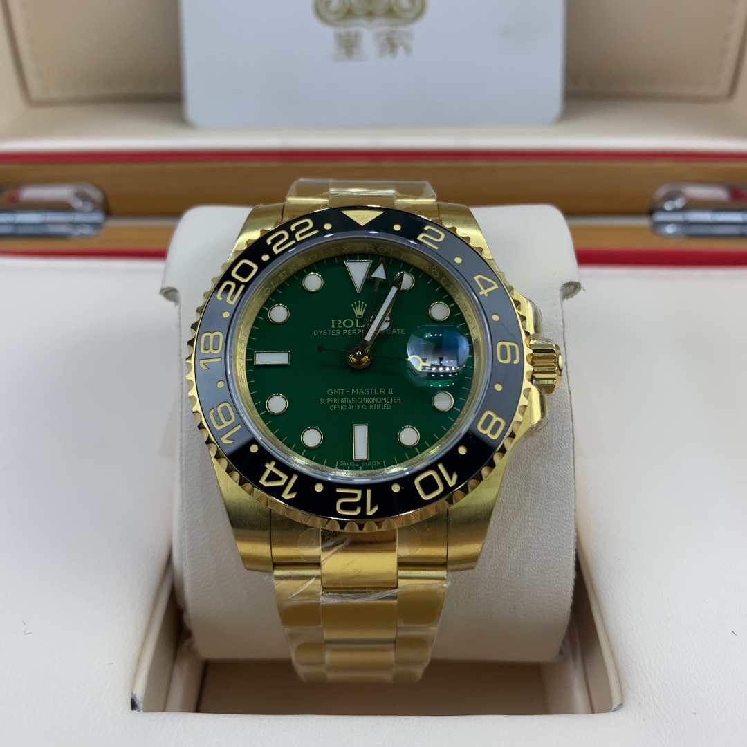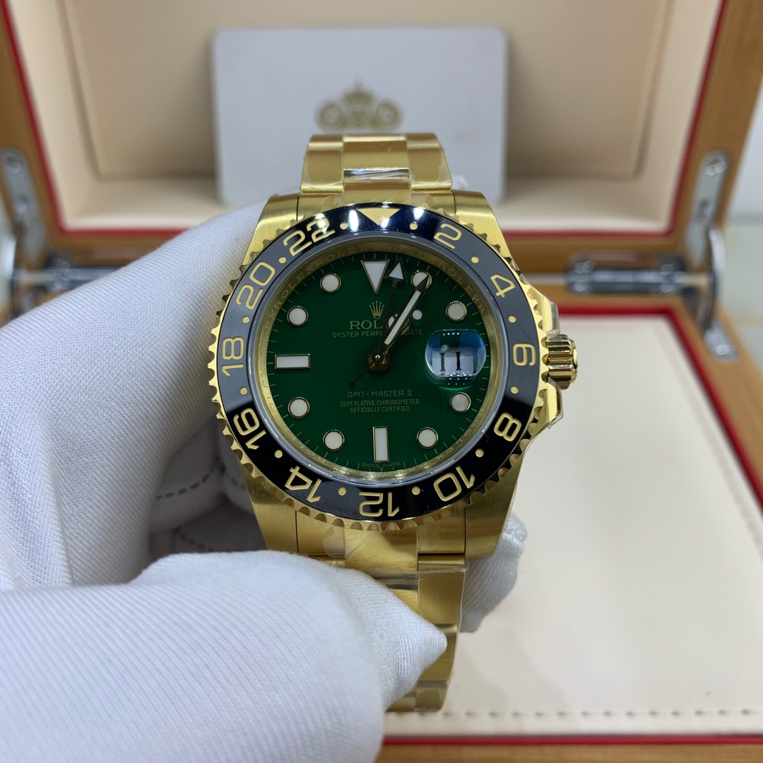 Royal Authentic Rolex GMT-Master II in Solid Gold with Green Dial