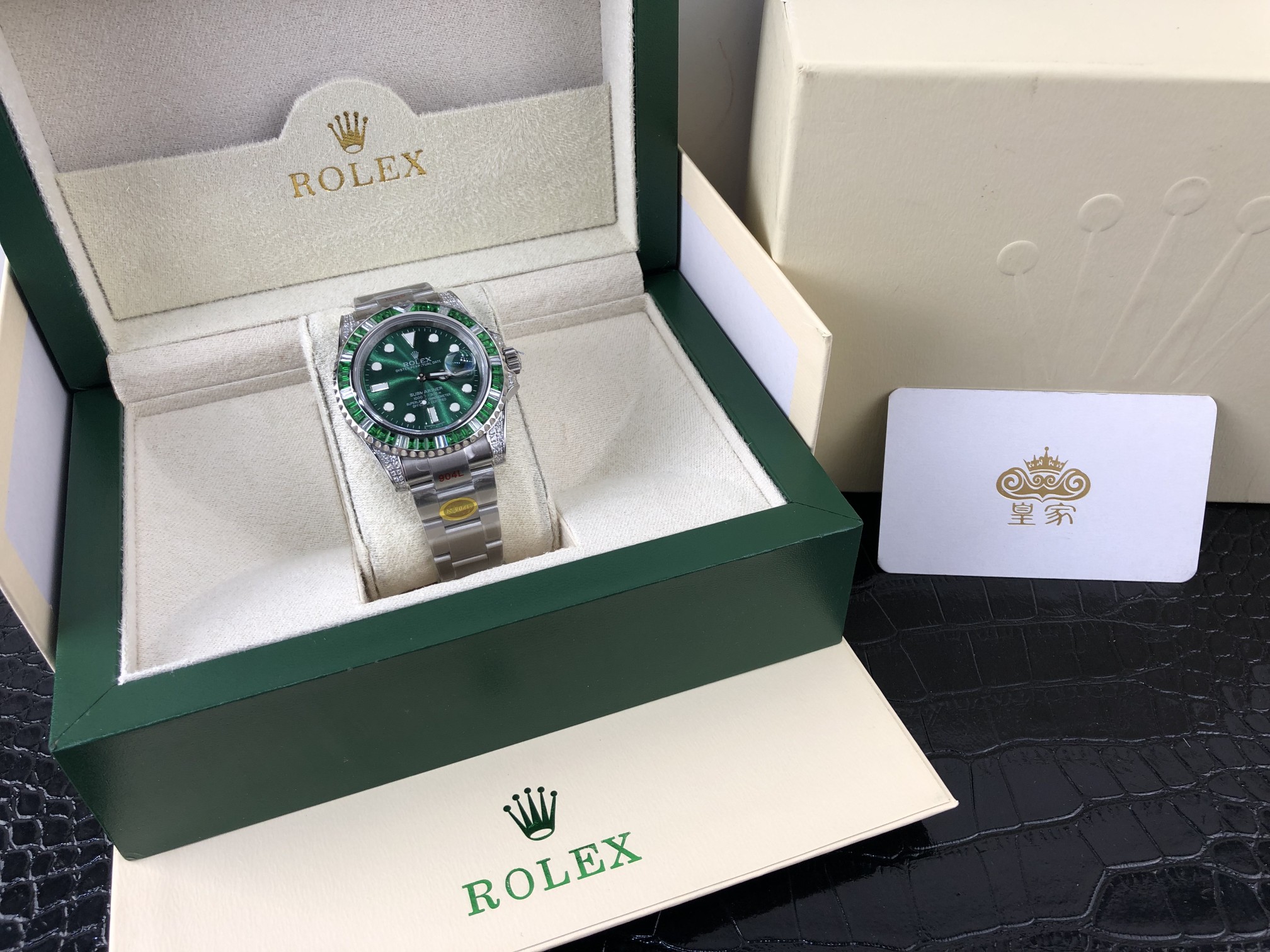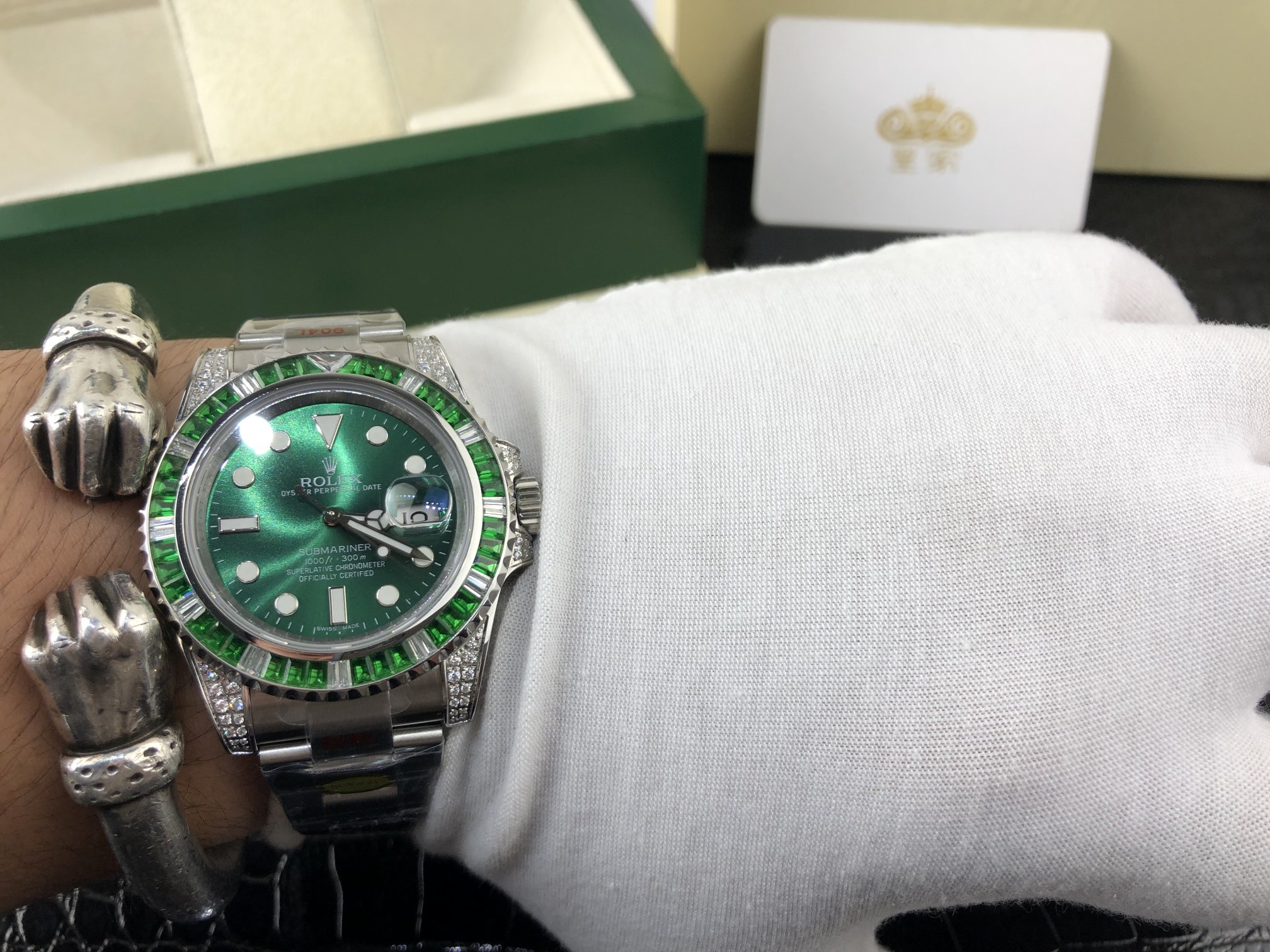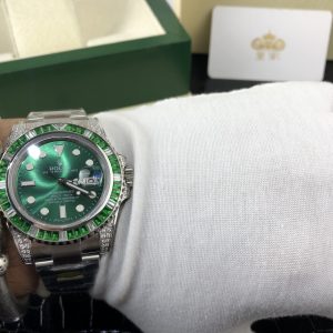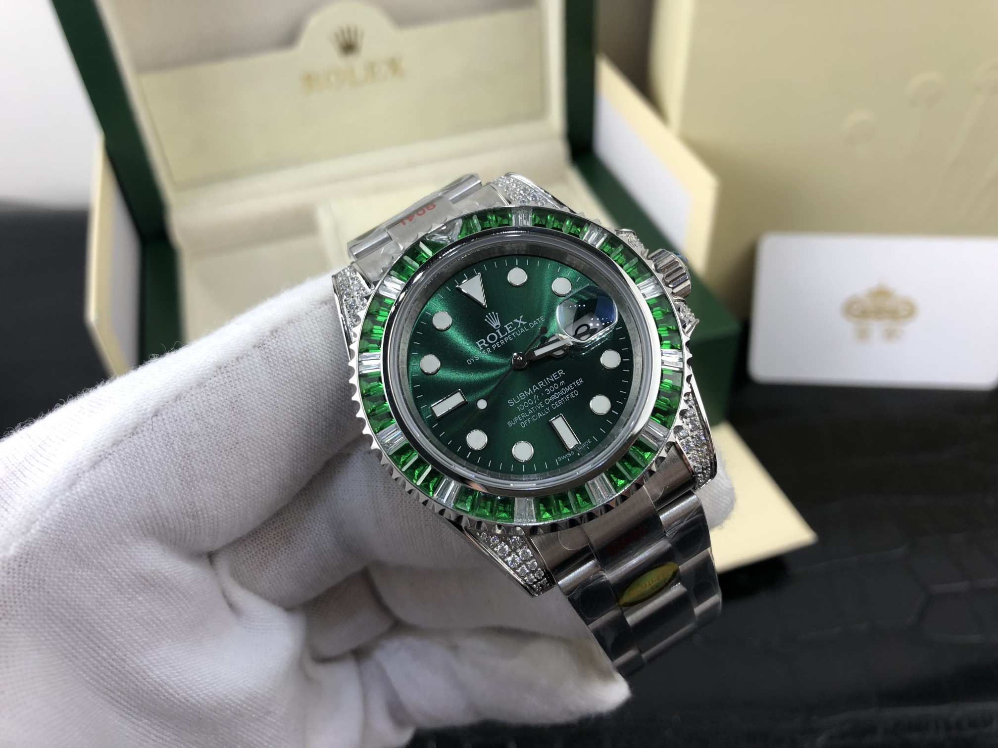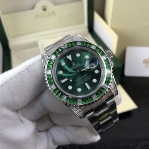 Royal Authentic Rolex Submariner Green Dial Men’s Watch with Square Diamond Accents
