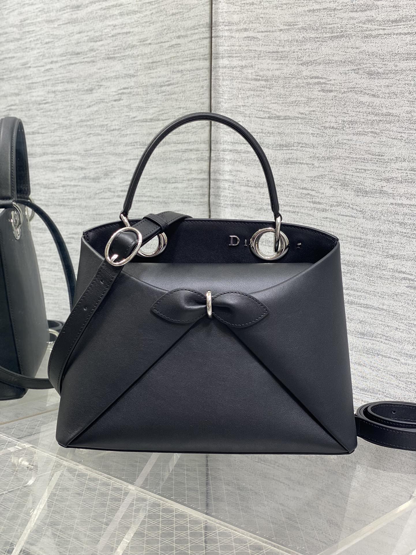 Silver Buckle In Stock‼️ Dior 2026's latest bow tote bag, featuring a signature bow welded into the design. The bow no longer carries that sweet, girly vibe—its new silhouette and styling, paired with versatile color options, strike the perfect balance between sweet and edgy. Size: 28*10*22