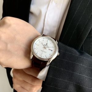 The Lao Li Dual Calendar Men’s Watch features a 41mm diameter and 10mm thickness. This timepiece is the preferred choice for those who dare to blend classic elegance with modern innovation. Its 41mm case boasts a distinguished design with clean lines, establishing it as a quintessential modern classic timepiece.
