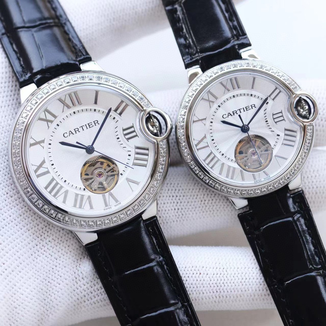 The latest couple’s matching tourbillon watches online: Cartier Ballon Bleu Tourbillon Collection (42mm x 36mm) 🎈 Fish-eye sapphire crystal glass The best-selling white Roman numeral dial exudes fashionable elegance. The tourbillon movement operates clearly visible, showcasing noble luxury.Water Droplet: Fish-eye bubble double-curved sapphire crystal) (Crafted from 316L stainless steel) (Steel blue sword-shaped hands) 316L steel bracelet with original buckle closure. Italian imported calfskin leather strap seamlessly blends classic and innovative design. Authenticity guaranteed (Case back code, warranty card, and tag all match; individually packaged).